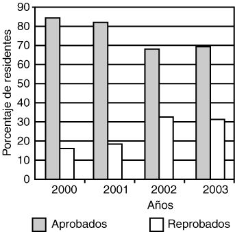 19 residentes y lo reprobaron 3 (15.78%); en el año 2001,
