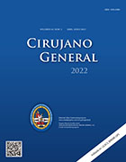 Cirujano General Vol. 44, No. 2, Abril-Junio 2022. Es una publicación trimestral editada por la Asociación Mexicana de Cirugía General. Calzada General Anaya 330. Col. Del Carmen. Del. Coyoacán, Ciudad de México, México. C.P. 04100. http://www.medigraphic.com/cirujanogeneral revista@amcg.org.mx Editor responsable. Dra. Abilene C. Escamilla. Reserva de Derechos al Uso Exclusivo Nº 04-2017-111614180600-203. ISSN Electrónico 2594-1518. Ambos otorgados por el Instituto Nacional del Derecho de Autor. Responsable de la última actualización de este número, Departamento de Internet, Graphimedic, S.A. de C.V., Ing. Luis Rosales Jiménez, Coquimbo 936, Col. Lindavista, Delegación Gustavo A. Madero, C.P. 07300, Ciudad de México, México. Fecha de última modificación, 3 de octubre de 2025.