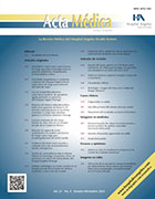 Es una publicación bimestral editada por Grupo Ángeles Servicios de Salud S.A. de C.V., calle Camino a Santa Teresa 1055 – interior piso 14, colonia Héroes de Padierna, Alcaldía La Magdalena Contreras, C.P. 10700, Ciudad de México, México. Tel. 55-5449-6200 ext. 6438. http://www.medigraphic.com/actamedica , https://www.hospitalesangeles.com. ramblas47@gmail.com. Editor responsable: Dr. Alberto Orozco Gutiérrez. Reservas de Derechos al Uso Exclusivo: especie difusión vía red de cómputo Núm. 04-2023-091214555100-203, ISSN 3061-7774, otorgados por el Instituto Nacional del Derecho de Autor. Arte, diseño, formación, impresión y distribución por Graphimedic S.A. de C.V., emyc@merigraphic.com, calle Coquimbo 936, colonia Lindavista Norte, Alcaldía Gustavo A. Madero, C.P. 07300, Ciudad de México, México, Tel. 55 85 89 85 27 al 32. Responsable de la última actualización de este número para su formato electrónico: Departamento de Internet, Graphimedic, S.A. de C.V., Ing. Luis Rosales Jiménez. Fecha de última modificación, 31 de octubre de 2025.