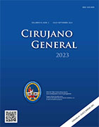 Cirujano General Vol. 45, No. 3, Julio-Septiembre 2023. Es una publicación trimestral editada por la Asociación Mexicana de Cirugía General. Calzada General Anaya 330. Col. Del Carmen. Del. Coyoacán, Ciudad de México, México. C.P. 04100. http://www.medigraphic.com/cirujanogeneral revista@amcg.org.mx Editor responsable. Dra. Abilene C. Escamilla. Reserva de Derechos al Uso Exclusivo Nº 04-2017-111614180600-203. ISSN Electrónico 2594-1518. Ambos otorgados por el Instituto Nacional del Derecho de Autor. Responsable de la última actualización de este número, Departamento de Internet, Graphimedic, S.A. de C.V., Ing. Luis Rosales Jiménez, Coquimbo 936, Col. Lindavista, Delegación Gustavo A. Madero, C.P. 07300, Ciudad de México, México. Fecha de última modificación, 3 de octubre de 2025.