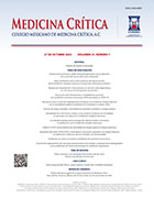 Medicina Crítica Vol. 37, No. 7, Octubre- 2023. es una publicación bimestral editada por el Colegio Mexicano de Medicina Crítica, A.C. Cincinnati 40, Col. Noche Buena, 03720, Alcaldía Benito Juárez, Ciudad de México, México. Tel: 55 55 98 16 84, Página oficial www.medigraphic.com/medicinacritica Correo electrónico: contacto@commec.org. Editor responsable: Dr. Jesús Ojino Sosa García. Reserva de Derechos al Uso Exclusivo No. 04-2016-101119141500-102, e-ISSN en trámite, otorgados por el Instituto Nacional del Derecho de Autor. Responsable de la última actualización de este número Dra. Maria de la Luz Rosales Jiménez. Arte, diseño y composición tipográfica por Graphimedic, SA de CV, Coquimbo 936, Col. Lindavista, 07300, Alcaldía Gustavo A. Madero, Ciudad de México, México. Tels: 55 8589-8527 al 32. Correo electrónico: graphimedic@medigraphic.com. Fecha de última modificación, 3 de noviembre de 2025. El contenido de los artículos, así como las fotografías son responsabilidad exclusiva de los autores. La reproducción parcial o total sólo podrá hacerse previa autorización del editor de la revista. Toda correspondencia debe ser dirigida al editor responsable.