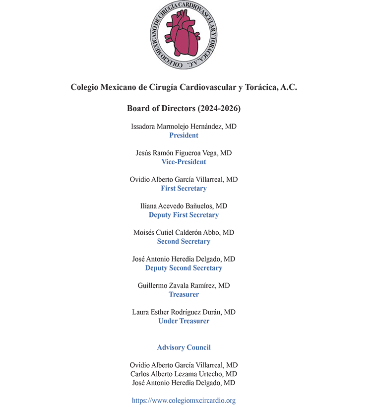 Diario Oficial de la Sociedad Mexicana de Cirugía Cardiaca, A.C., y del Colegio Mexicano de Cirugía Cardiovascular y Torácica, A.C.