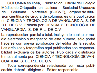 Órgano Oficial del Colegio Medico de Ortopedia en Jalisco y de la Sociedad Uruguaya de Columna Vertebral (SUCVE)