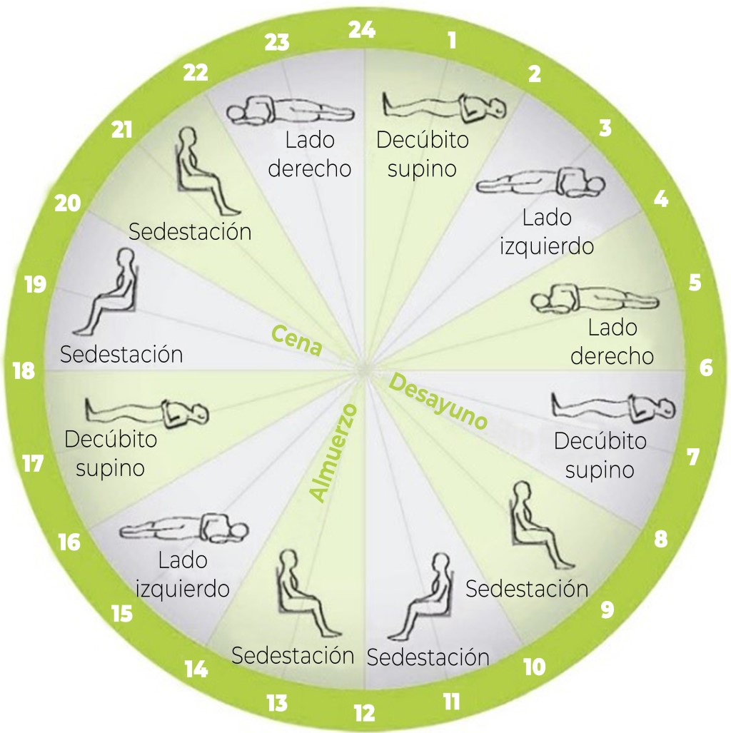 En el manejo de los cambios posturales, el personal de enfermería tiene un papel importante, ya que esa movilidad debe realizarse cada dos a tres horas siguiendo un programa rotatorio como el descrito en la (Figura 1).