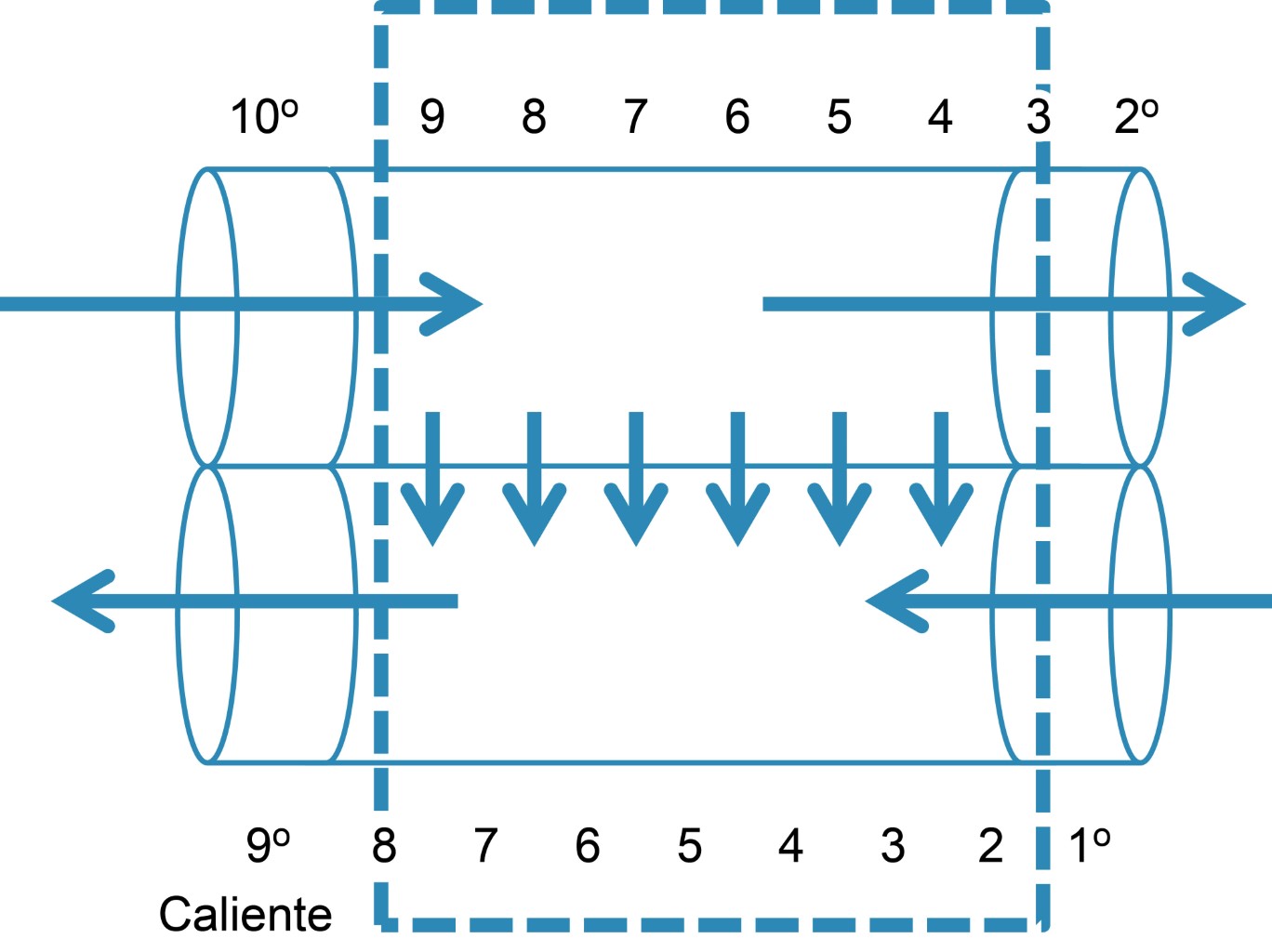 El principio básico de la contracorriente es que dos corrientes que se mueven en dirección opuesta y que están yuxtapuestas intercambian entre sí energía o sustancias, en una forma u otra. ¿Qué forma? es irrelevante para el principio. Hay dos formas de contracorriente la simple y la multiplicadora. La primera es aquella de intercambio simple muy utilizado en ingeniería, pero no es una idea patentable, ya que la naturaleza ha echado mano de este principio desde hace millones de años. Por ejemplo, las aves que viven en el Ártico poseen un sistema de intercambio calórico en que la temperatura de sus extremidades se iguala o se acerca a la temperatura exterior ya que la rete mirabile de sus miembros intercambia calor: las arterias lo pierden al descender a la superficie de las patas cercanas a la nieve y las venas que retornan recuperan la temperatura de la sangre como se observa en la Figura 4.9,10 Este mecanismo determina un ahorro sustancial de energía calórica en estos animales. Lo mismo se ha descrito en la piel exterior de ballenas y focas, alces, caribúes, perros del ártico, puercoespines y otros animales.10 Todos presentan una red capilar superficial que enfría la superficie del cuerpo del animal y después regresa la sangre venosa cada vez más caliente para mantener la temperatura corporal en límites normales, al echar mano de este mecanismo se impide la pérdida calórica del organismo, o bien, que ésta sea mínima.10-15 Ya Claudio Bernard en 18761 había hecho hincapié en este hecho.