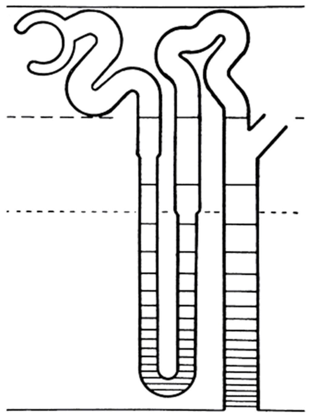 Una gran controversia que se suscitó en el siglo XX sobre la fisiología del riñón y en el que estuvo involucrado el Dr. Homer W Smith, en ese momento el líder de la fisiología del riñón, ocurrió en la década de los años 50 y se relacionaba con el mecanismo renal de la concentración urinaria, proceso fundamental en el control de nuestro medio interno.1,2 En esa época, el Dr. Smith3 dibujaba la nefrona en forma rectilínea como se ejemplifica en la Figura 1.