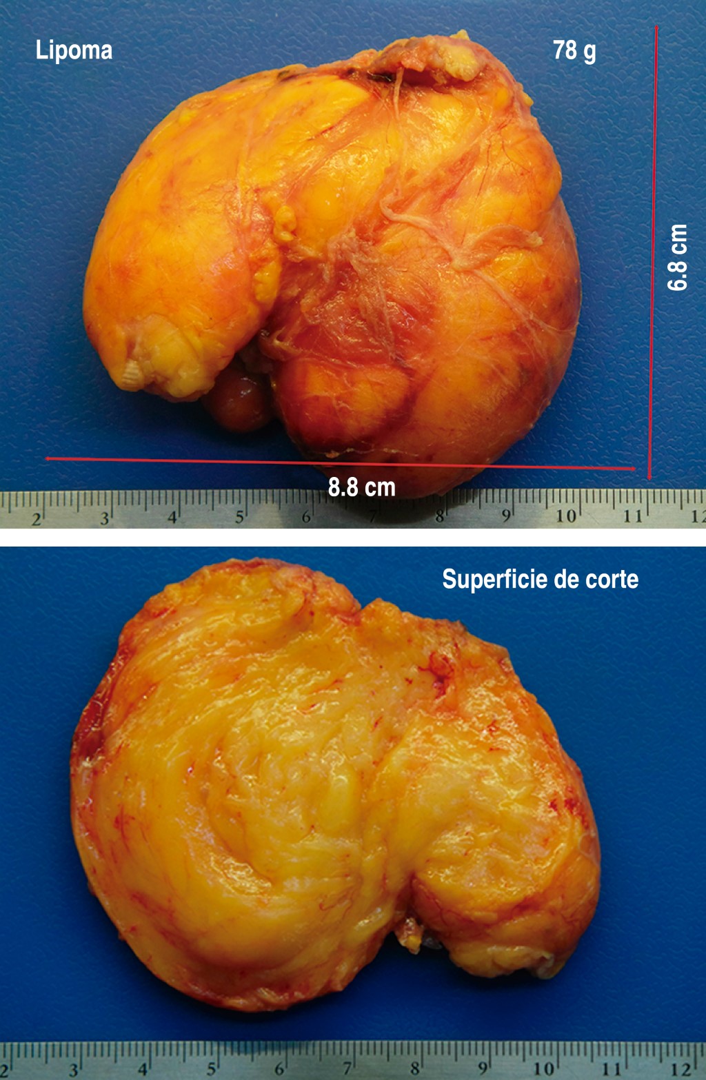 Los lipomas se definen como masas blandas de células adiposas que a menudo se encuentran encapsuladas por una capa fina de tejido fibroso.1,2 Son considerados los tumores benignos de tejidos blandos más comunes, con una prevalencia de 2.1 por cada 1,000 habitantes y representan aproximadamente 50% de todos los tumores del sistema musculoesquelético.3,4,5 Pueden localizarse en cualquier región del cuerpo y pueden clasificarse en superficiales o profundos (subfasciales). Tienen clara preferencia por el tejido celular subcutáneo, suelen ser pequeños y pesar unos cuantos gramos. De manera común los encontramos en el muslo, hombro y tronco.3,6