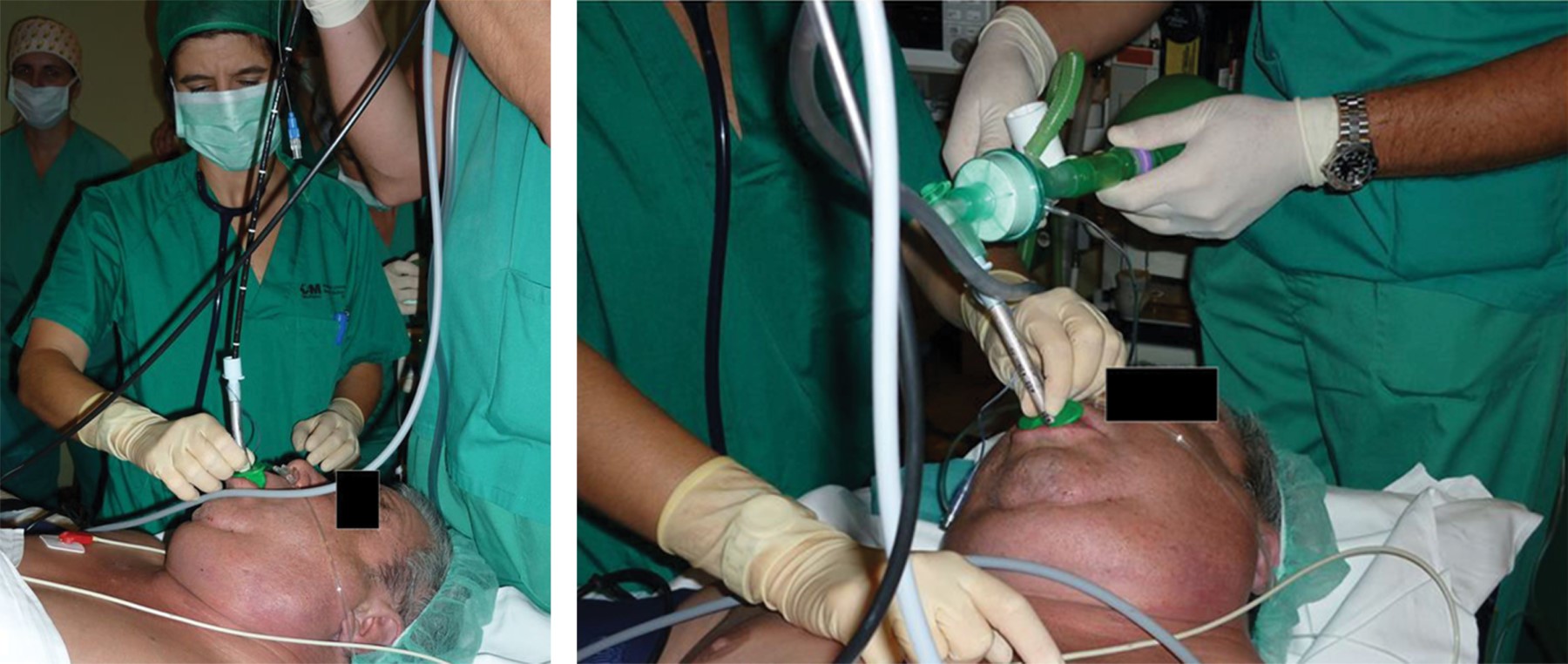Los pacientes sin criterios de una vía aérea difícil que requieren intubación orotraqueal son abordados mediante laringoscopía directa. En pacientes con vía aérea difícil predicha, el uso de videolaringoscopio o fibrobroncoscopio flexible debe anticiparse(14).
