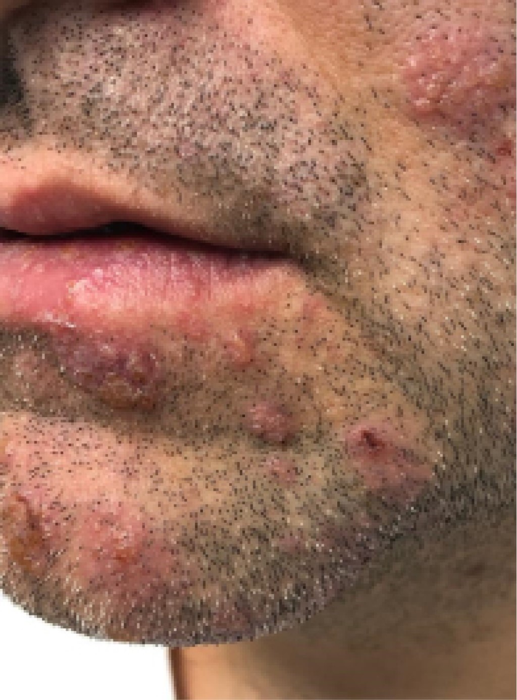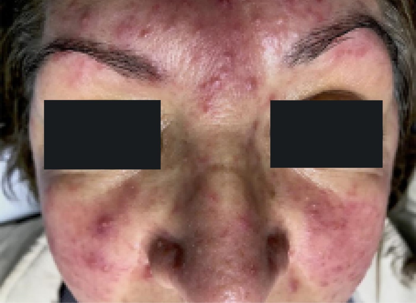 Clínicamente, suelen aparecer pápulas y pústulas diseminadas por la cara, sobre todo en la frente y en las mejillas (Figura 5). También se han descrito casos de rosácea fulminante tras la administración de dichas vitaminas, que se produjeron de forma dosis-dependiente en la mayoría de los casos.