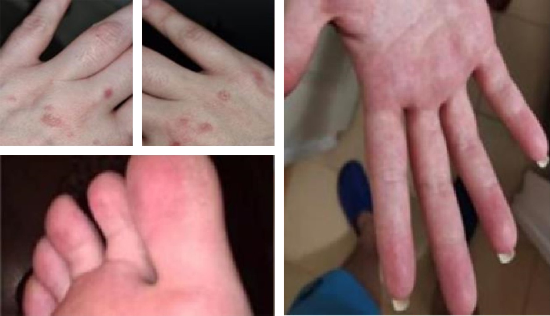 Hacen falta más reportes de casos de pacientes con este tipo de erupción vesicular que se ha descrito como una erupción viral específica de COVID 19, la típica descripción es un rash vesicular monomorfo localizado o diseminado, medianamente pruriginoso.