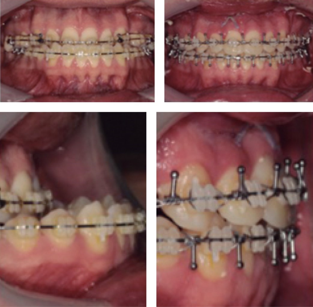 Se realiza la programación preoperatoria de cirugía ortognática combinada y se inicia con el tratamiento ortodóncico preoperatorio, que consistió en la colocación de dos tornillos en paladar para corregir la sobreexpansión dentoalveolar del maxilar superior, palatinizando los primeros y segundos molares superiores. Para buscar una estabilidad oclusal, se colocaron arcos 0.017 × 0.025 de acero, buscando la descompensación prequirúrgica. En seis meses se consiguió la estabilidad oclusal y se sometió a cirugía ortognática combinada: osteotomía Lefort I de avance maxilar, de 9 mm, con rotación hacia la izquierda 3 mm; osteotomía sagital mandibular de retroceso de 9 mm, la que se llevó a cabo mediante: