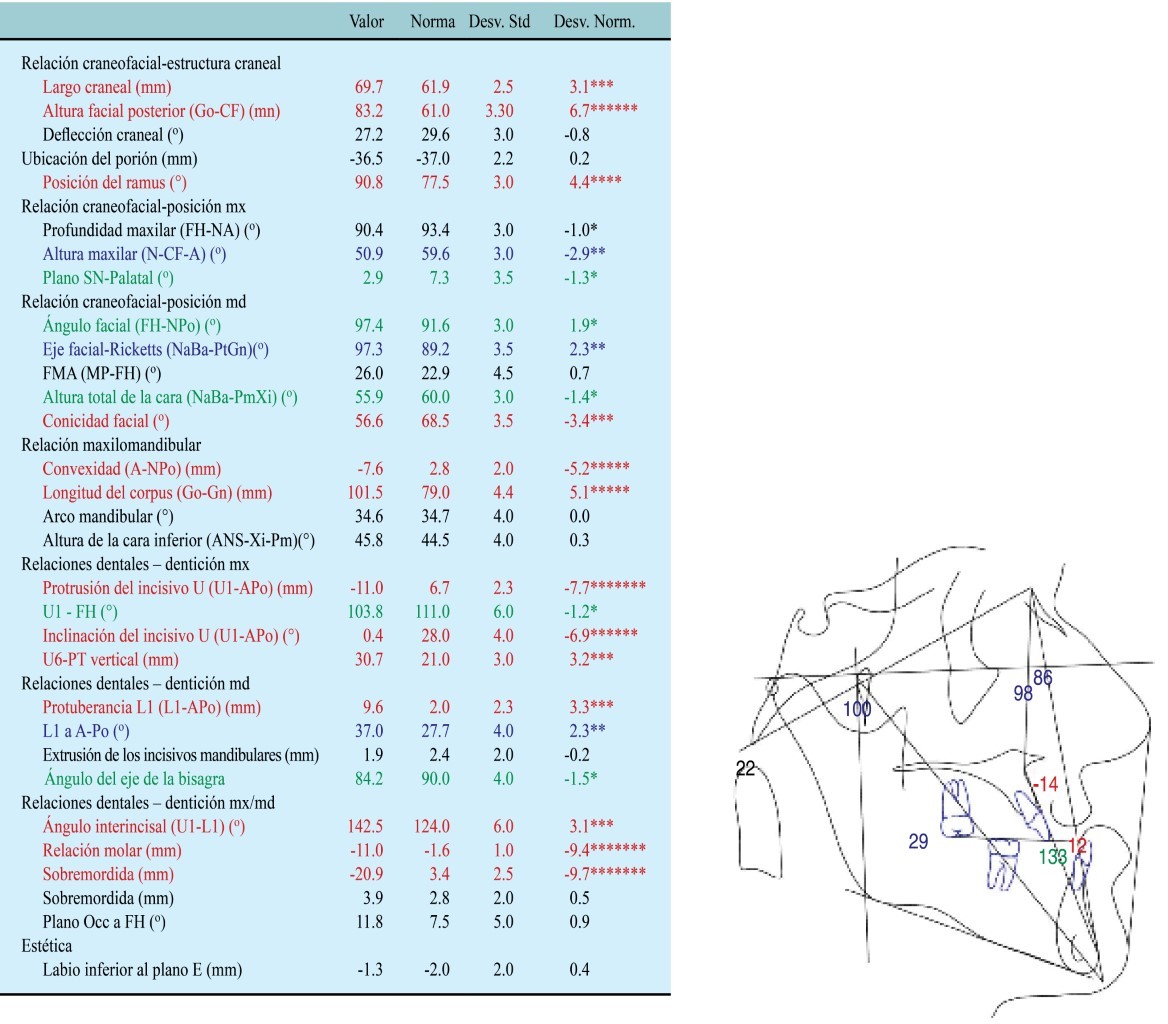 Se describen tres clases de maloclusión,1 donde la clase III está definida cuando la cúspide mesiovestibular del primer molar maxilar se articula de forma distal al surco mesiovestibular del primer molar mandibular. El molar mandibular está posicionado mesial con relación al molar maxilar,1 caracterizándose por mostrar una retrusión del tercio medio facial, labio superior plano o con hundimiento y un ángulo nasolabial horizontalizado, incisivos laterales pequeños o ausentes y mordida cruzada en algunas ocasiones. En la cefalometría, el ángulo SNA está disminuido, el ángulo SNB aumentado o normal y el ángulo ANB siempre será negativo.2,3 En estos casos, la cirugía ortognática combinada con la osteotomía LeFort I puede restaurar estética y funcionalmente el esqueleto facial.4