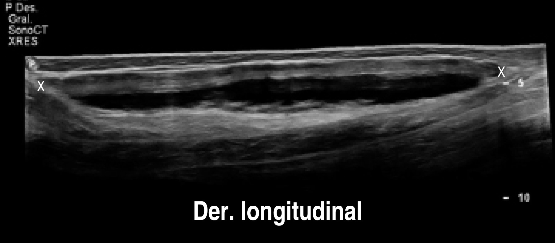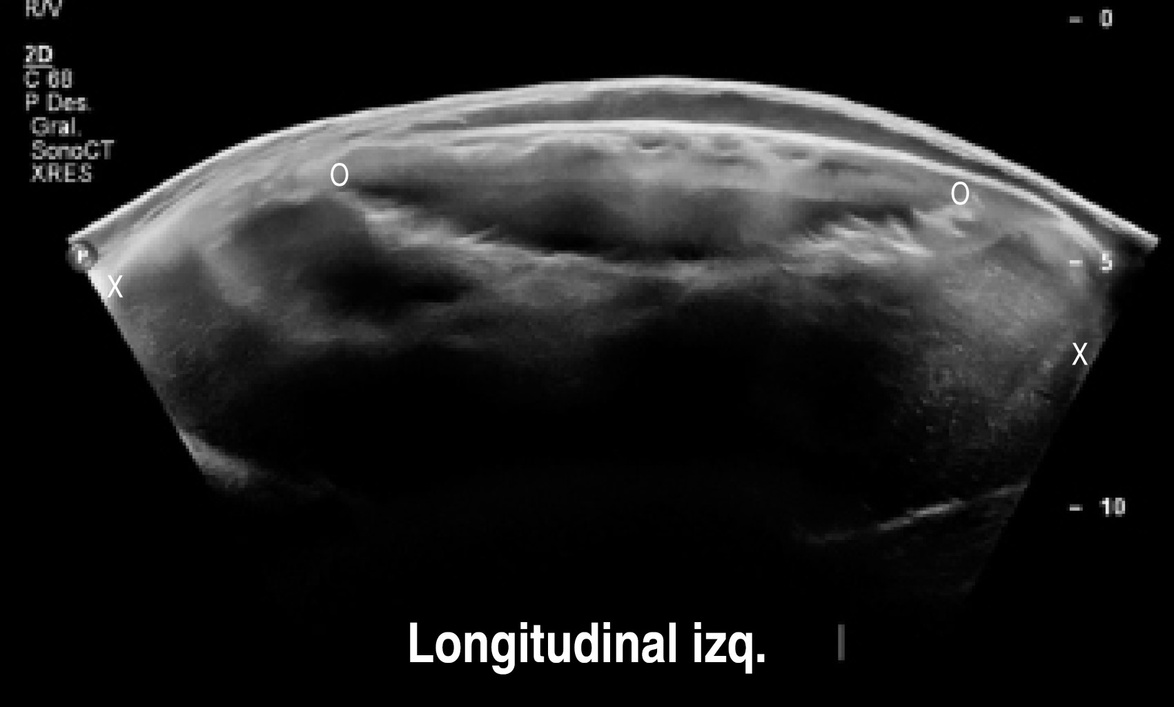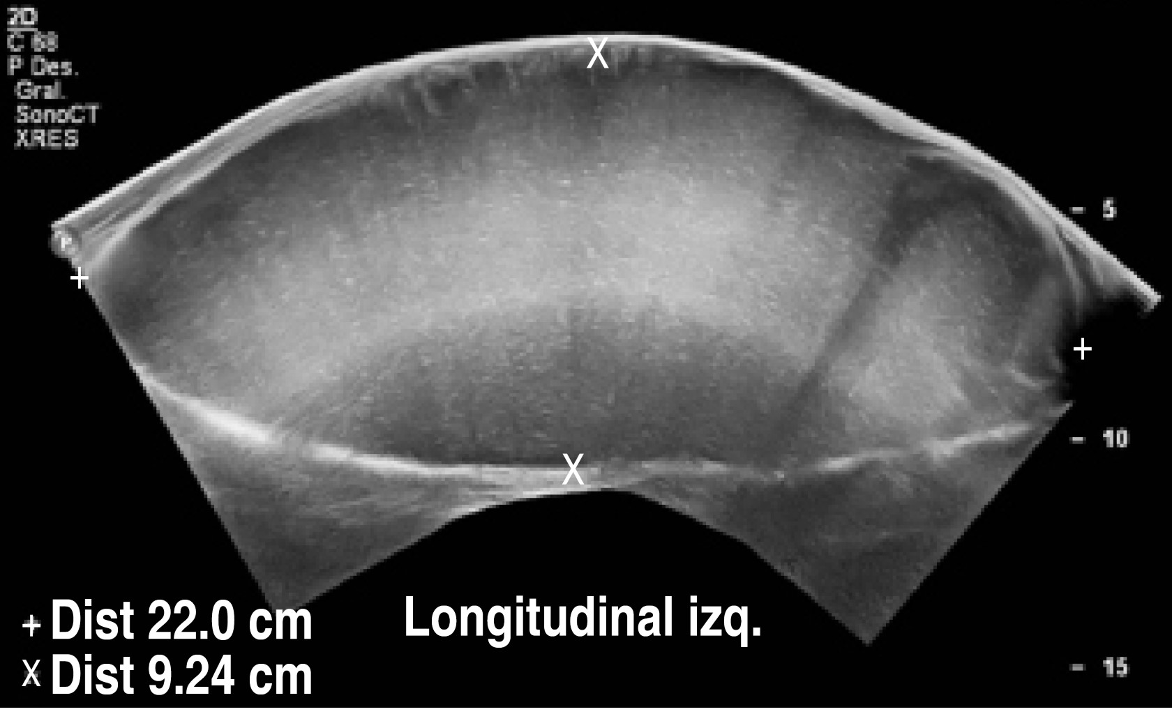 En el estudio de ultrasonido se encontró extensa colección líquida intracapsular de la pierna izquierda, sin descartar la ruptura del implante. El implante derecho con datos de ruptura y mínima colección.