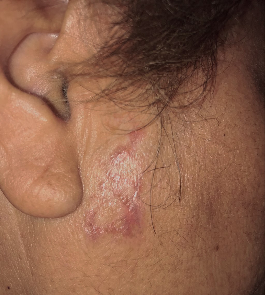 Placas eritematosas preauriculares