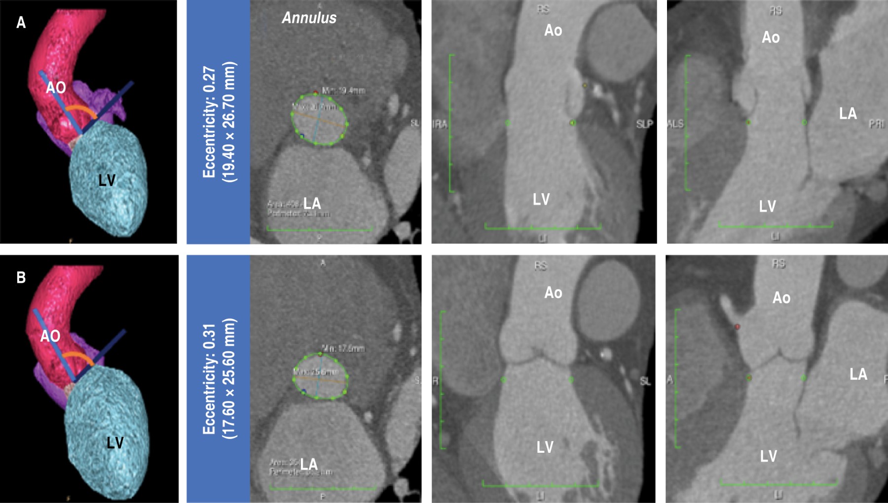 Introducción: Los rasgos específicos de la raíz aórtica parecen tener algunas implicaciones clínicas y pronósticas, y las diferencias relacionadas con el sexo se han descrito previamente. Sin embargo, faltan datos sobre la población mexicana. Objetivos: Describir las discrepancias relacionadas con el sexo con respecto a las características de la raíz aórtica en un análisis estructural y funcional. Material y métodos: Se analizaron los datos de hallazgos de la tomografía computarizada cardiaca de la raíz aórtica en 71 pacientes mexicanos con válvula aórtica de trivalva, sin estenosis valvular ni antecedentes de aneurisma de la aorta. Se dividió la población para describir las desviaciones específicas por sexo; mujeres 53.5% (n = 38) y hombres 46.5% (n = 33). La mediana de edad fue de 56 años (IQR: 49-64) con una prevalencia similar de hipertensión, diabetes, tabaquismo y dislipidemia. El peso, altura y área de superficie corporal (ASC) fueron significativamente más bajos en las féminas, sin divergencias en el índice de masa corporal. No hubo disparidades notorias con respecto a la excentricidad del anillo aórtico durante la sístole y la diástole y la angulación de la aorta durante la diástole. No obstante, la angulación aórtica durante la sístole fue mayor en mujeres y las dimensiones del anillo aórtico en sístole resultaron ostensiblemente más altas en varones. Las magnitudes de la raíz aórtica se revelaron superiores en los hombres, pero cuando se indexaron a ASC fueron más elevadas en las señoras. Se encontró un anillo aórtico pequeño en 71% de las féminas y 18.1% de los varones, y una raíz aórtica pequeña fue significativamente mayor en los señores en comparación con las señoras (30.3% versus 2.6%, p = 0.001). Conclusiones: Características individuales como el peso, estatura y ASC tienen consecuencias al comparar las dimensiones aórticas. Las diferencias de estos parámetros entre sexos, como la baja estatura corporal en las mujeres mexicanas, podrían explicar la alta prevalencia de un anillo aórtico pequeño, especialmente cuando la medida se indexa por altura del cuerpo y las otras particularidades de la aorta a diferentes niveles. Las implicaciones clínicas de estos hallazgos permanecen inciertas.REFERENCIAS (EN ESTE ARTÍCULO)