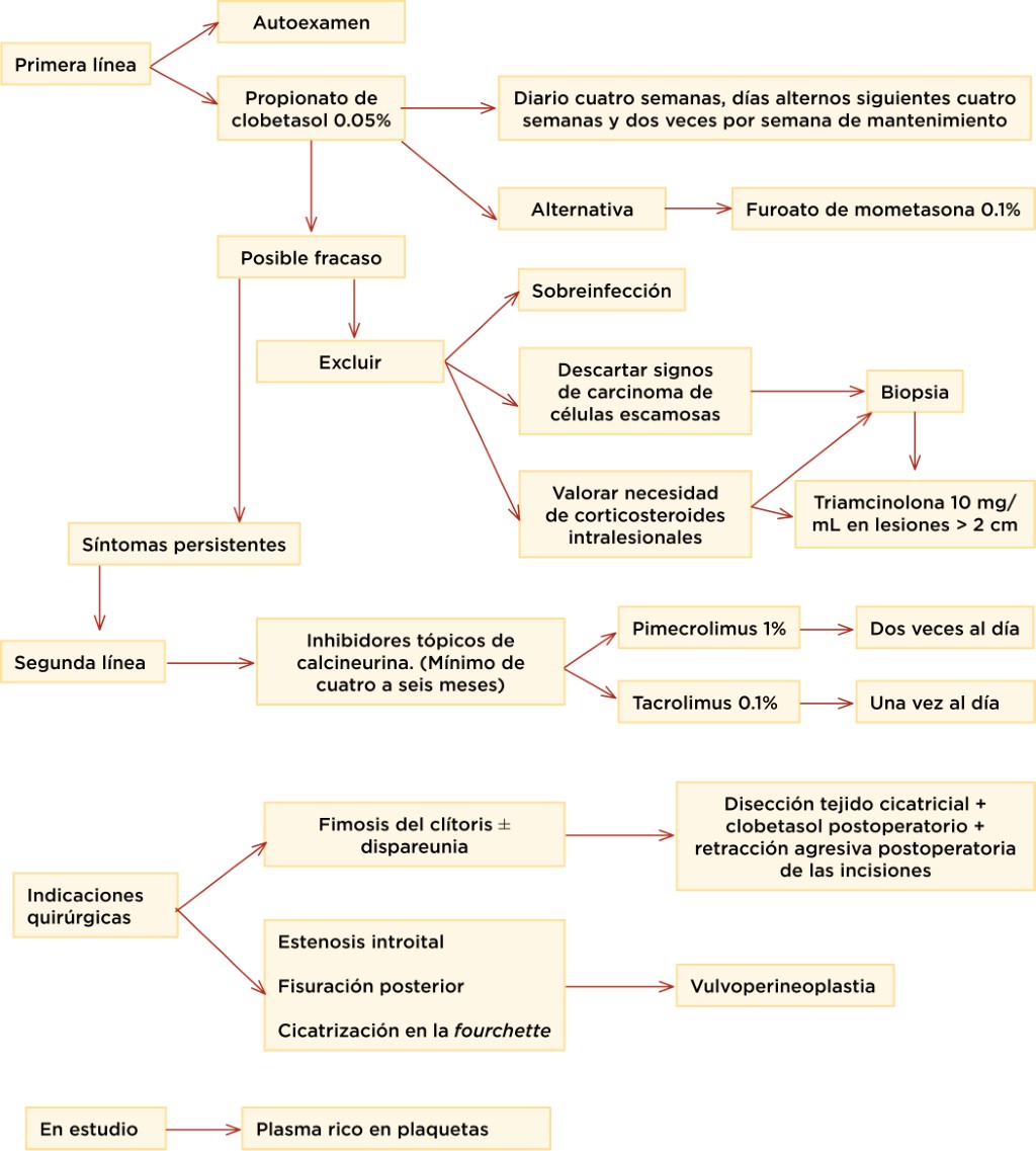 En la Figura 1 se presenta el algoritmo de manejo del liquen escleroso vulvar.