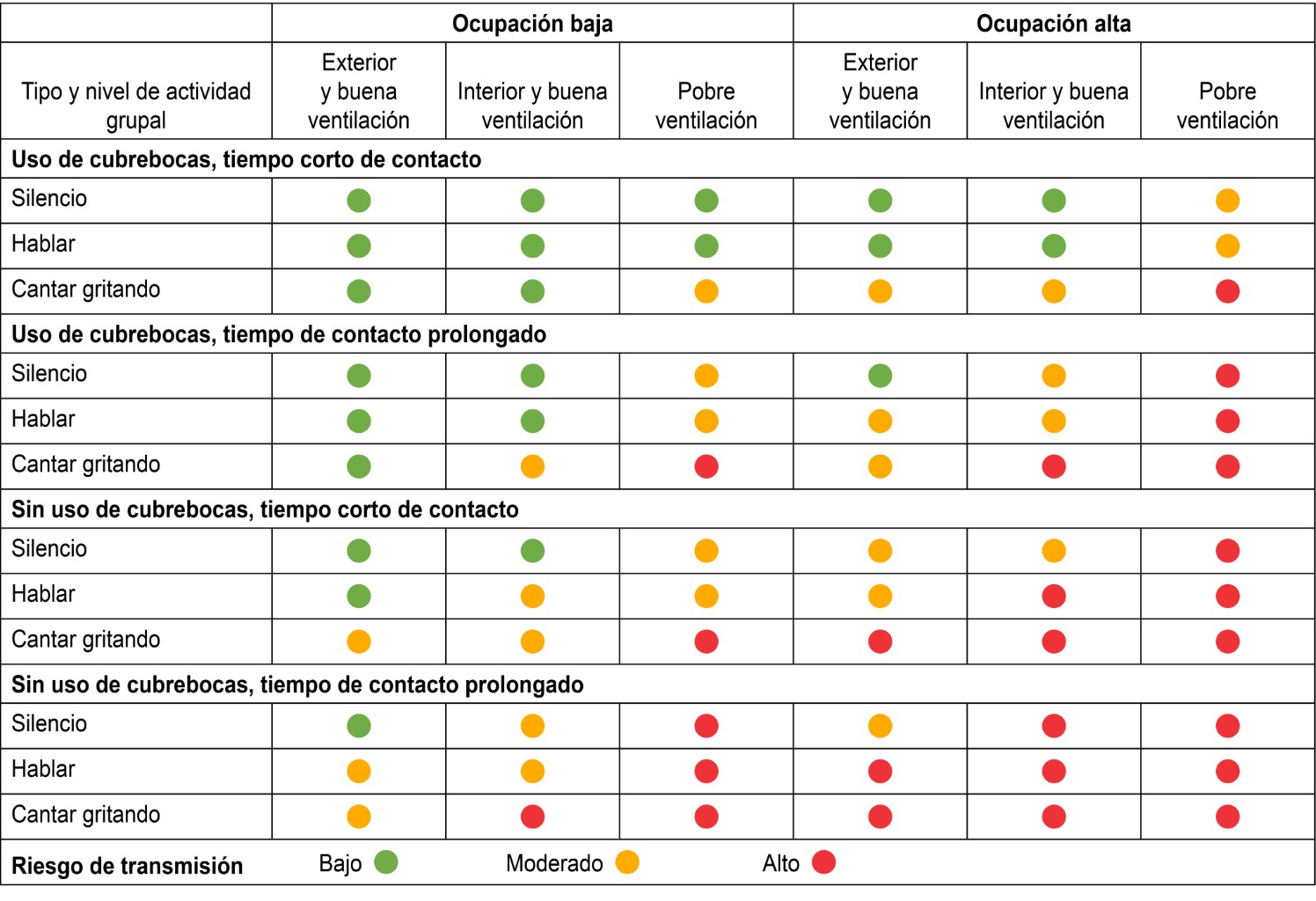 Este riesgo depende del medio de transporte utilizado y, a su vez, de diversos factores relacionados, como son: el distanciamiento espacial, duración del viaje, contacto cercano con alguna persona infectada, esquemas de vacunación completos, uso correcto y seguimiento de medidas preventivas, así como los lineamientos implementados por cada medio de transporte y país; el riesgo de infección es menor tras la adecuada implementación y seguimiento de éstos.