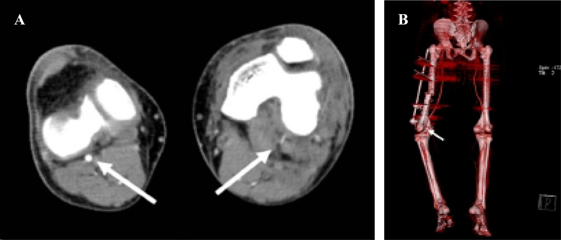 Bonnevialle P, Pidhorz L; Membres du Groupe d'Etude en Traumatologie Ostéoarticulaire (GETRAUM). Dislocation and fractures around the knee with popliteal artery injury: A retrospective analysis of 54 cases]. Rev Chir Orthop Reparatrice Appar Mot. 2006; 92(5): 508-16. doi: 10.1016/s0035-1040(06)75840-8.