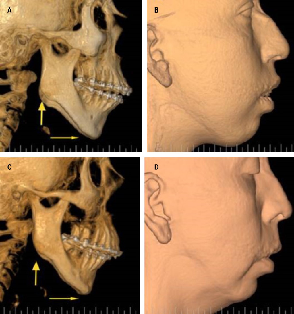 Técnicas sobre tejidos blandos como el levantamiento superficial o profundo se basan fundamentalmente en la reposición de tejidos musculares, ligamentos y paquetes de grasa; de hecho, algunos casos de levantamiento facial profundo incluyen reposición de glándula submandibular o el retiro de la misma.16 La estabilidad en estos procesos se ha evaluado positivamente; sin embargo, en la mayoría de las investigaciones revisadas hay un limitado análisis sobre los patrones esqueletales de los sujetos incluidos en las muestras de estudio, de forma que los autores de la presente investigación sugieren la probabilidad de que algunas indicaciones de técnicas de cirugía estética y de rejuvenecimiento facial sobre tejidos blandos se realicen en sujetos con algún patrón esqueletal patológico como la deformidad facial de clase II y que no son evaluados de manera adecuada o incluidos en las muestras de estudios previamente publicados. Las técnicas de osteotomía de avance podrían ser más eficientes y efectivas en estas condiciones, abordando de manera integral la reposición de tejidos blandos duros.24