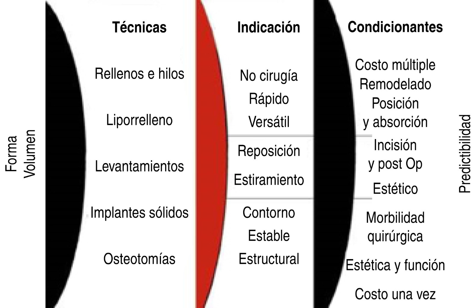 Procedimientos no quirúrgicos con el uso de hilos y rellenos se han extendido ampliamente en los últimos años,25,26 aumentando las herramientas disponibles para los clínicos considerando sus ventajas y desventajas; sin embargo, y de la misma forma que ocurre en las investigaciones de orientación quirúrgica, es necesario definir variables de patrón esqueletal de los sujetos de muestra para definir de mejor forma las indicaciones óptimas de tratamiento. En algún punto todas las técnicas pueden ser complementarias, siendo cada vez más necesario definir las mejores opciones para nuestros pacientes (Figura 4).
