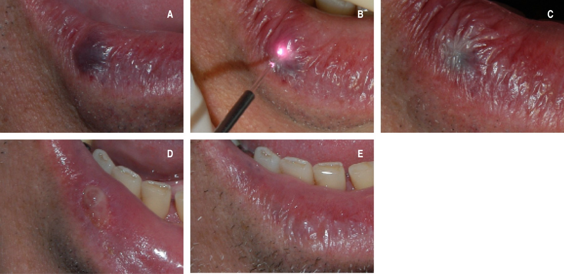 This type of lesion, when located on the lips, generates the need for treatment without leaving aesthetic sequelae. However, in conventional treatments, this turns out to be somewhat challenging, as it usually culminates in local changes with visual flaws or poor visual outcomes with sensory impairment. The conventional options are surgical excision, cryosurgery, or application of sclerosing agents.