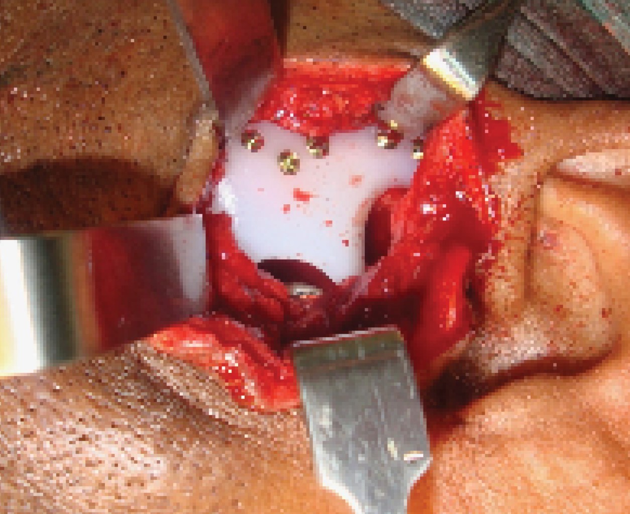 El principio más importante en la cirugía de implantación de prótesis de ATM es la estabilidad de los componentes protésicos. Las prótesis personalizadas se logran mediante la fijación con tornillos y la perfecta adaptación de los componentes a la anatomía del paciente. Esto evita o reduce los micromovimientos, los cuales son responsables de fracasos a largo término.12 Wolford y colaboradores en un estudio comparativo entre prótesis de stock y personalizadas concluyen que los pacientes implantados con prótesis personalizadas tienen mejores resultados estadísticamente significativos, tanto objetivos como subjetivos, que los implantados con prótesis de stock.13