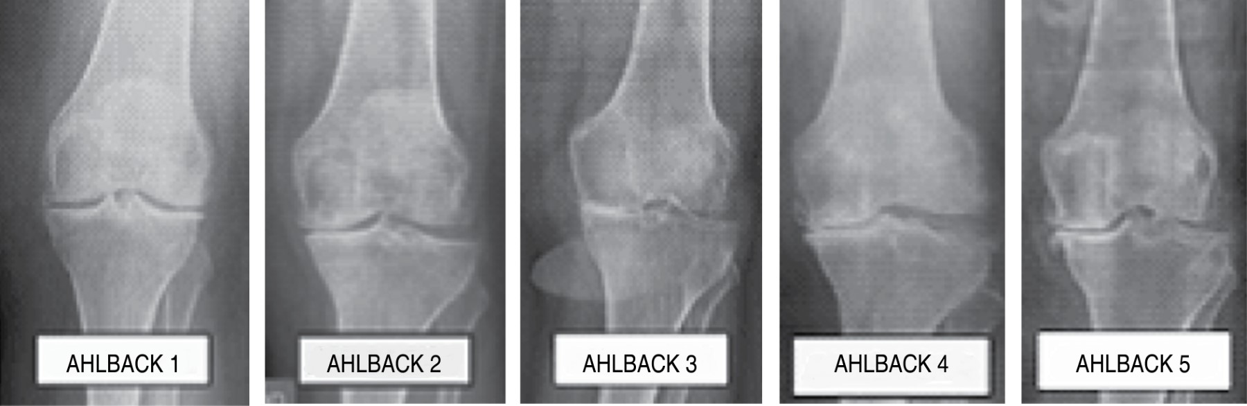 La osteoartrosis es el trastorno musculoesquelético más común encontrado en atención primaria.1 Como una enfermedad crónica está caracterizada por dolor y discapacidad física, siendo la rodilla la articulación más afectada.2 Según la OMS, afecta a 9.6% de los hombres y 18% de las mujeres > 60 años.3 En EUA, la tasa de incidencia anual estandarizada para la gonartrosis por edad y sexo por 100,000 habitantes fue de 240.4 En la mayoría de los casos, vamos a encontrar que no existe ningún factor determinante que origine la aparición de artrosis sin existir ninguna alteración articular preexistente, dentro de las causas secundarias destacan las postquirúrgicas, postinfecciosas y postraumáticas, donde desempeñan un papel fundamental las deformidades angulares residuales como el varo y valgo, que provocan distribución anormal de las cargas de peso.5 La presencia de factores de riesgo contribuye al aumento de la incidencia de la enfermedad en la población general, y se correlaciona con el grado de dolor articular experimentado por el paciente.6 Se ha encontrado relación de la obesidad y el tejido adiposo, ya que aumenta la síntesis de citocinas proinflamatorias, como el factor de necrosis tumoral alfa y las interleucinas (IL) 1, 6, 8 y 18, disminuyendo además las citocinas reguladoras como la IL-10.7 Se considera el dolor como síntoma primario y la principal causa de discapacidad funcional.8 Para la gradación radiológica de la gonartrosis se ha desarrollado la escala de Ahlbäck (Tablas 1 y 2) y la de Kellgren y Lawrence (Figura 1).9-11 La artroplastia total de rodilla (Figura 2) es considerada como el principal tratamiento y constituye al día de hoy el que consigue mejores resultados funcionales y de satisfacción a corto y mediano plazo.12 El uso de isquemia con mango neumático o elástico sigue muy arraigado en la práctica de la cirugía ortopédica, si bien es cierto que conlleva ventajas técnico-quirúrgicas, como una mejora en la visión quirúrgica al mantener un campo operatorio más limpio y reduce el tiempo operatorio, no es un procedimiento inocuo,13 ya que se le ha asociado con complicaciones trombóticas, vasculares, nerviosas, dolor intenso en el muslo, retardo en la cicatrización de la herida, cambios hemodinámicos inherentes al proceso de isquemia y reperfusión y disminución de rangos de movilidad.14,15