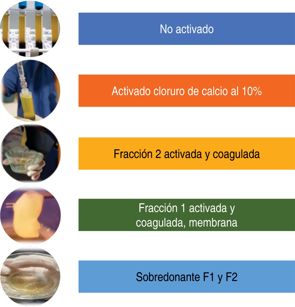 La extracción de sangre se realiza en sala ambulatoria con cuatro horas de ayuno, y se recomienda tomar hasta 2 l de agua natural previos a la toma sanguínea para mejorar el volumen sanguíneo. La técnica de extracción dependerá del sistema a utilizar (abiertos o cerrados). Se extraen de 20 a 40 ml de sangre venosa periférica, ésta se centrifuga a determinada velocidad dependiendo del kit utilizado, por ejemplo, el sistema de BTI PRGF- Endoret® requiere centrifugar a 1,800 RPM o 580 g durante ocho minutos.13