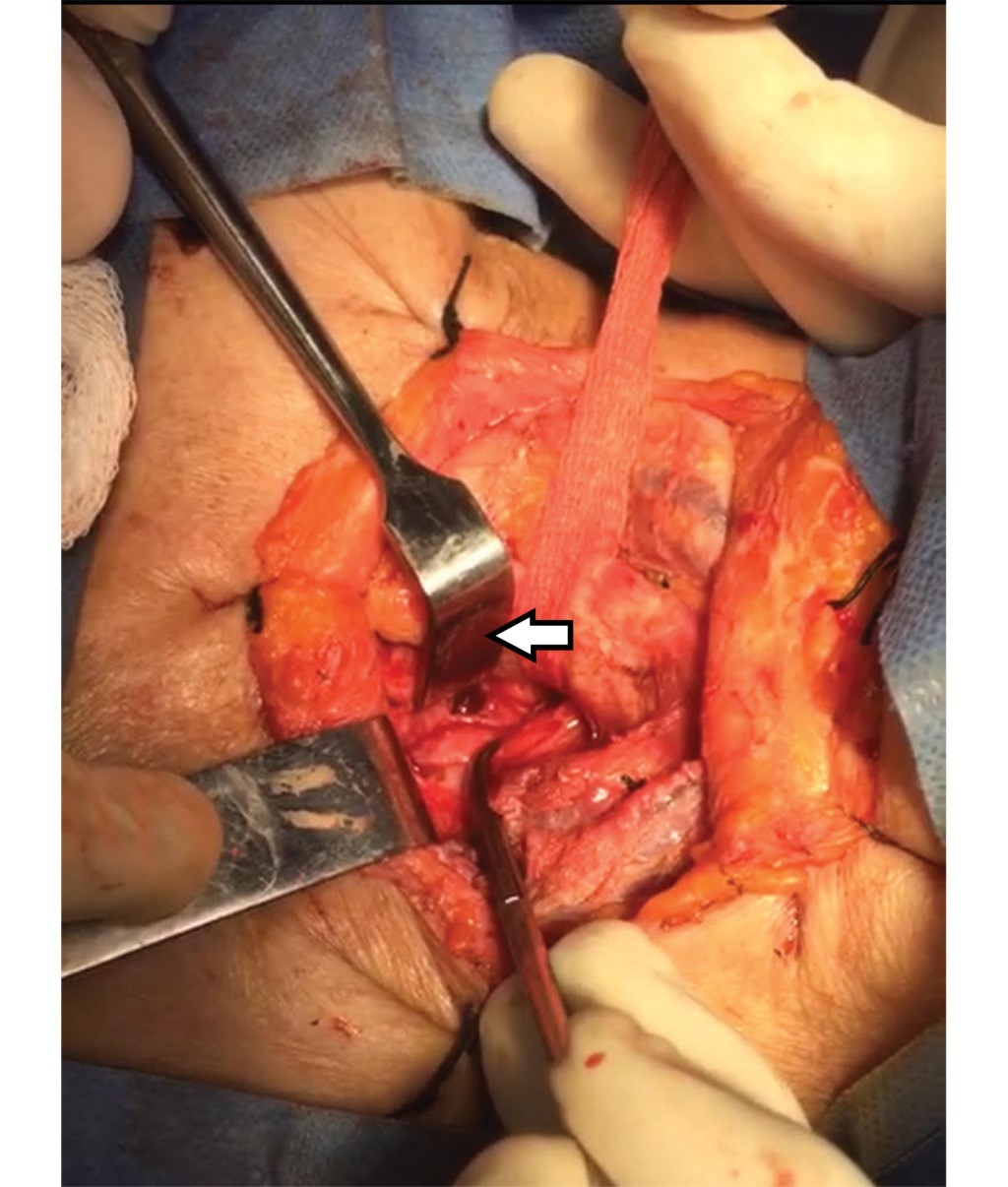 La traqueostomía percutánea por dilatación sobre una guía, descrita por Ciaglia en 1985, se ha convertido en el procedimiento de elección en la UTI. Una posible causa de complicación son las variantes anatómicas no percibidas,4 entre otras (Tabla 1). La edad y el género son factores de riesgo asociados a lesión traqueal; la literatura refiere que en el adulto mayor y en mujeres de baja estatura la parte membranosa de la tráquea es más susceptible de desgarro, ambos factores presentes en la paciente.2 Otro factor de riesgo es un inflado excesivo del manguito de la cánula orotraqueal fuera del rango permitido de entre 20-30 mmHg, que genera lesión en la mucosa con debilidad de la pared traqueal.4 La broncoscopia permite la confirmación en tiempo real de la colocación de la aguja, cánula traqueal y la prevención de lesiones en la pared posterior de la tráquea.4