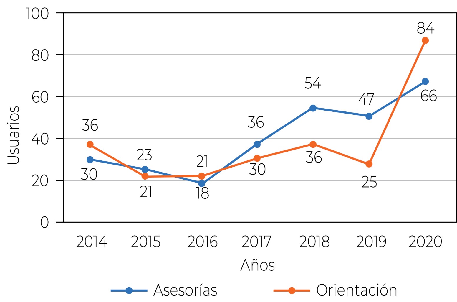 - b. Orientaciones: esta acción inicia a partir del 2010, presentando un incremento del 73%, en el 2020.
