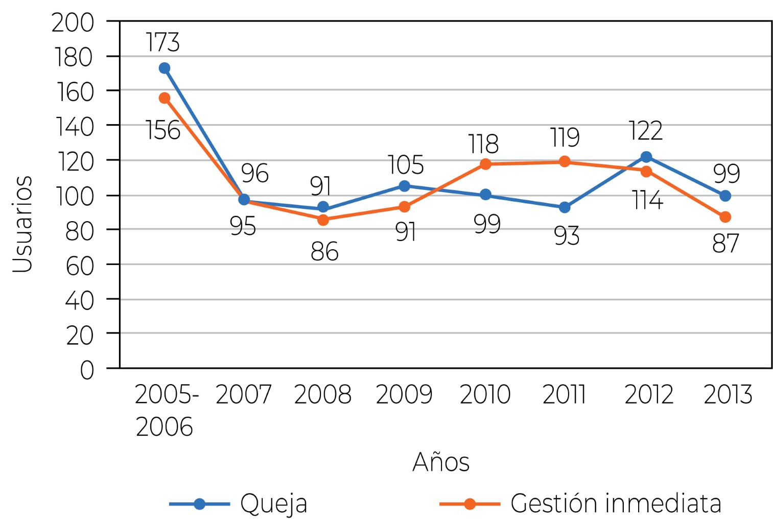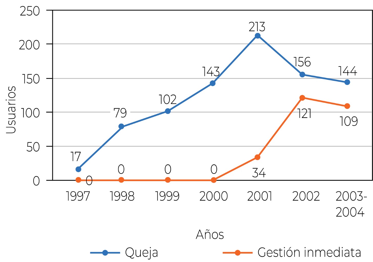 - a. Quejas: observan incremento en 1997, hasta el 2001 (196%), con descenso a un 114% en el 2020.