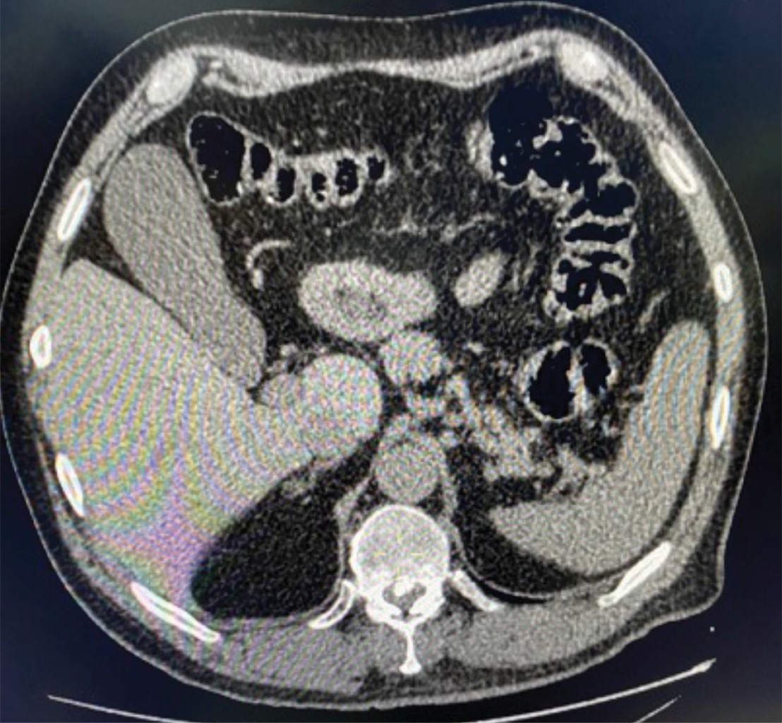 En el caso de la tomografía, la identificación (visualización) de cálculos biliares no calcificados tiene sensibilidad muy baja (25-88%),2 ya que los litos y la bilis son isointensos y, por lo tanto, no es una herramienta útil para el diagnóstico de colecistitis litiásica. Aunque existen las técnicas tomográficas con energía dual3 que sí permiten distinguir estas estructuras, aún no es común contar con este recurso en la mayoría de los hospitales. Otro dato poco reportado en tomografía, que ha sido descrito como predictor temprano de inflamación, es el reforzamiento hepático perivesicular en la fase arterial.4