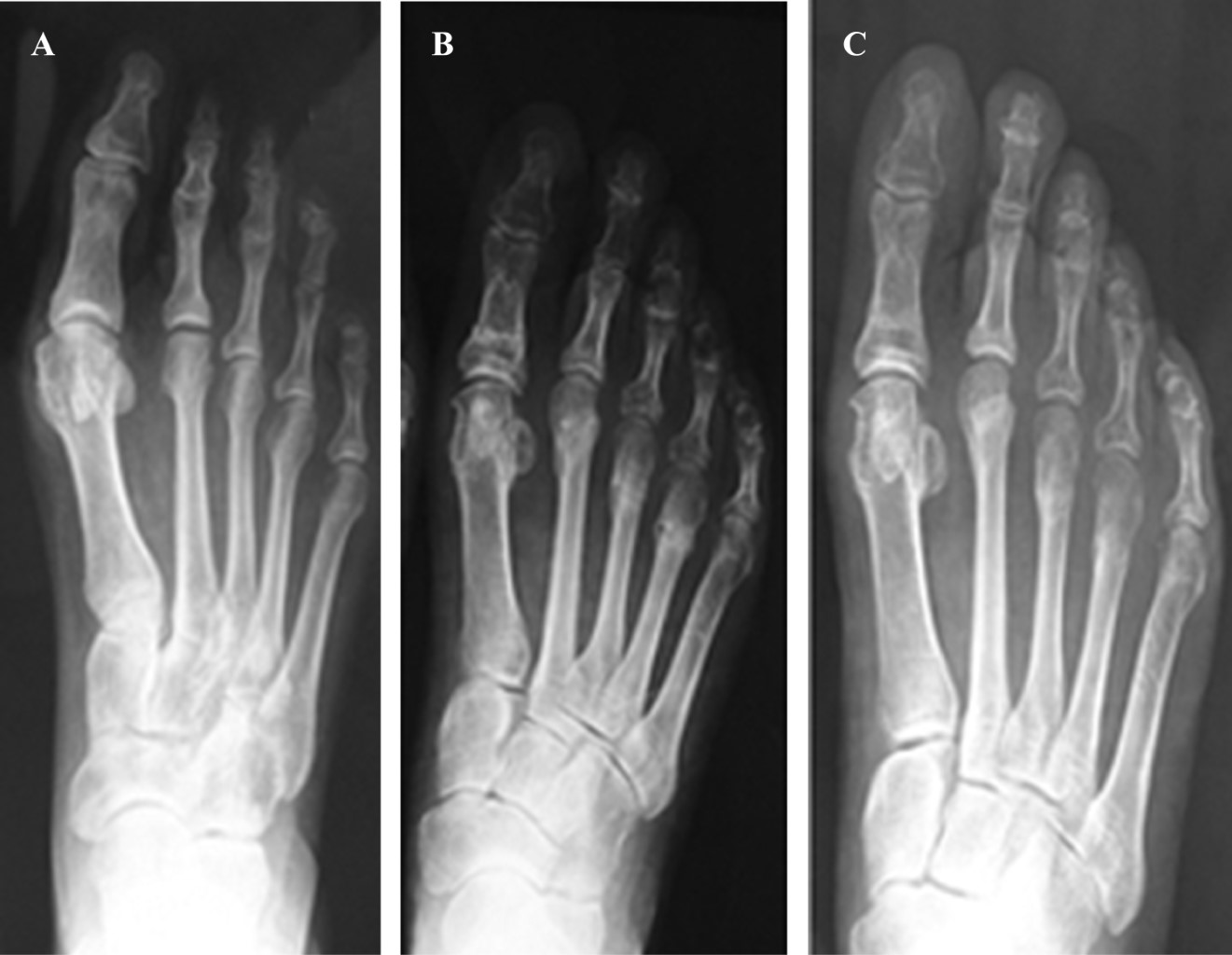 Todos fueron valorados pre- y postquirúrgicamente, fueron intervenidos quirúrgicamente por los cirujanos de nuestro grupo. Dentro de la consulta prequirúrgica se realizó una valoración de la escala funcional validada de la AOFAS, la escala visual análoga del dolor y la movilidad de la primera metatarso-falángica.