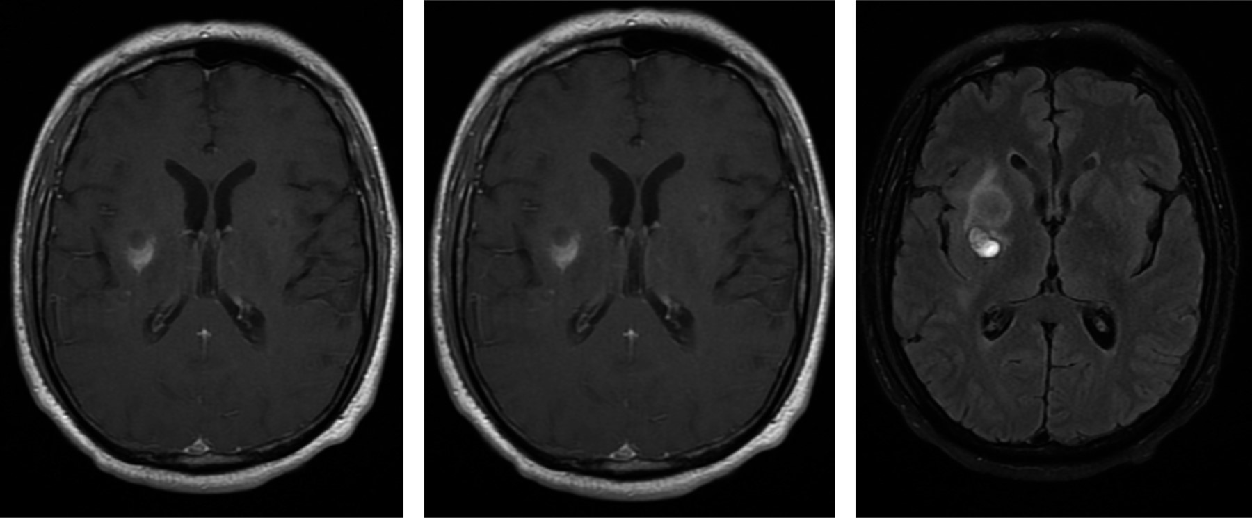Sin embargo, paciente reconsulta al mes del egreso por presentar nuevamente cefalea de las mismas características, para lo cual se toman nuevas neuroimágenes (Figura 3).