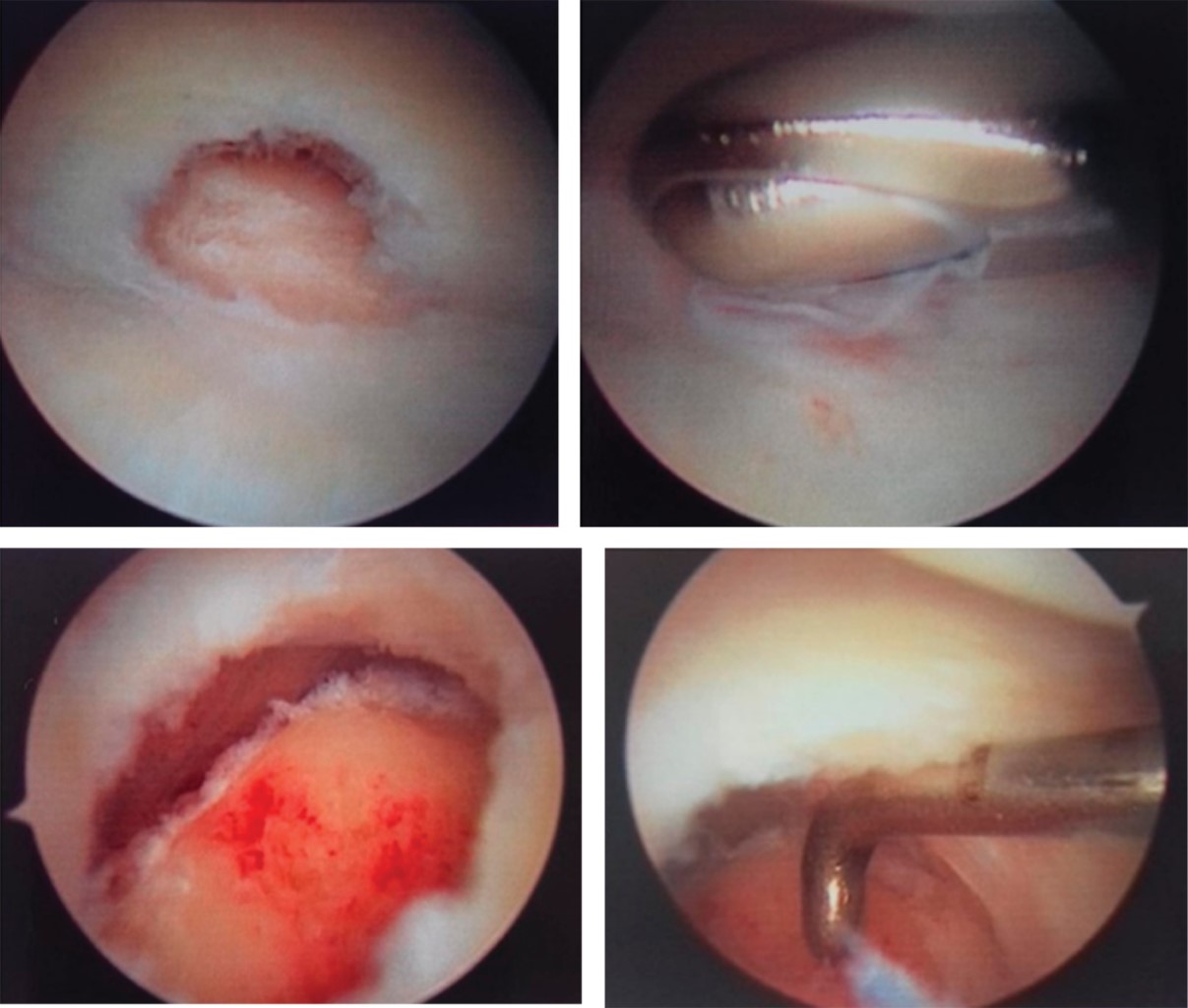 Se realiza sinovectomía, se extraen los cuerpos libres articulares, se realiza hemostasia con ayuda de radiofrecuencia. Al final de la cirugía se obtuvo una varianza cubital de neutral a -2 mm, se cierran los portales con prolene 0000, y se inmoviliza con férula antebraquiopalmar.