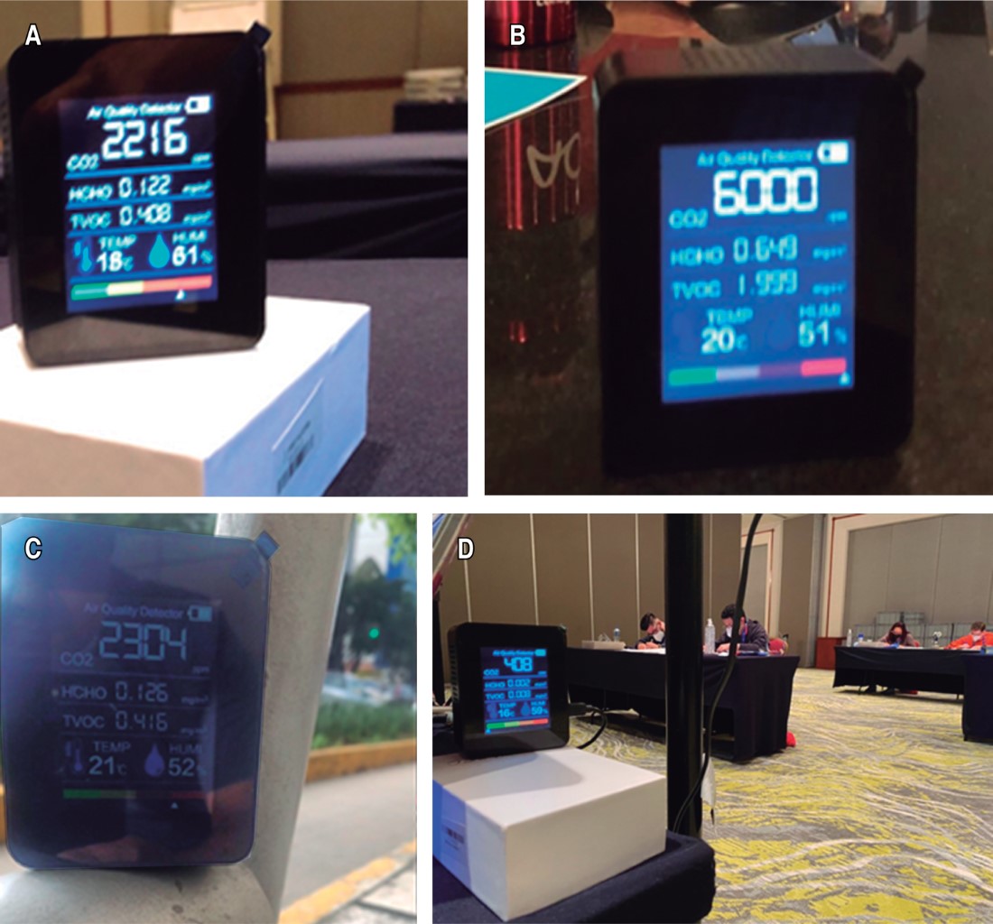 2 nos ayudó a mejorar la ventilación y el flujo de aire en las diferentes áreas del hotel donde se impartió el curso. Se enviaron 360 encuestas a los participantes en los cursos de principios básicos para indagar sobre los síntomas de COVID-19 cinco días después de los cursos.