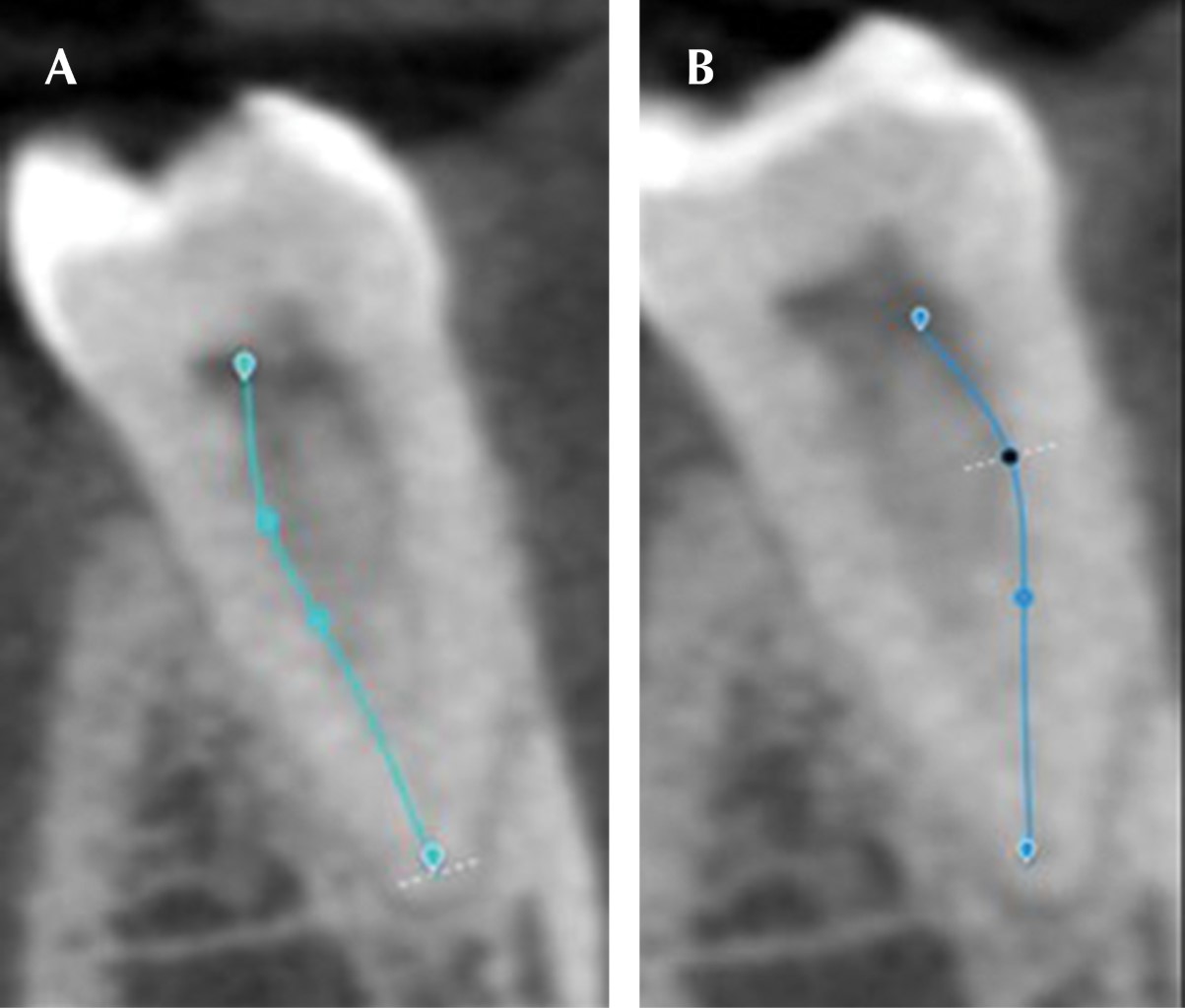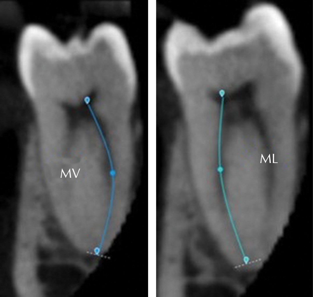 Se demostró que, aunado a los factores ya existentes en relación con las dificultades para instrumentar los conductos mesiales de los primeros molares inferiores, se debe agregar la presencia de la curvatura vestíbulo-lingual, la cual no se puede observar en una radiografía dental convencional, esto pretende ayudar a disminuir los accidentes durante esta fase del tratamiento, seleccionando de una manera más adecuada la técnica de instrumentación en estos procedimientos clínicos.