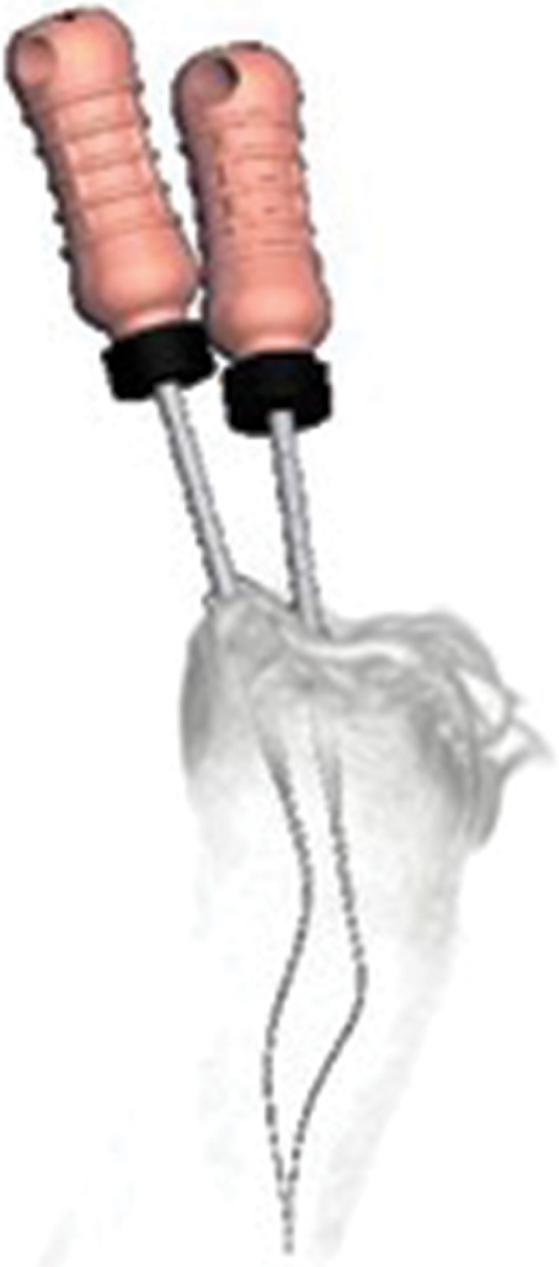 Un ejemplo de lo anterior se puede observar por medio de la técnica de pulpectomía lateral15 que muestra la posición de limas dentro de conductos MV y ML con salidas independientes en apical (Figura 11).