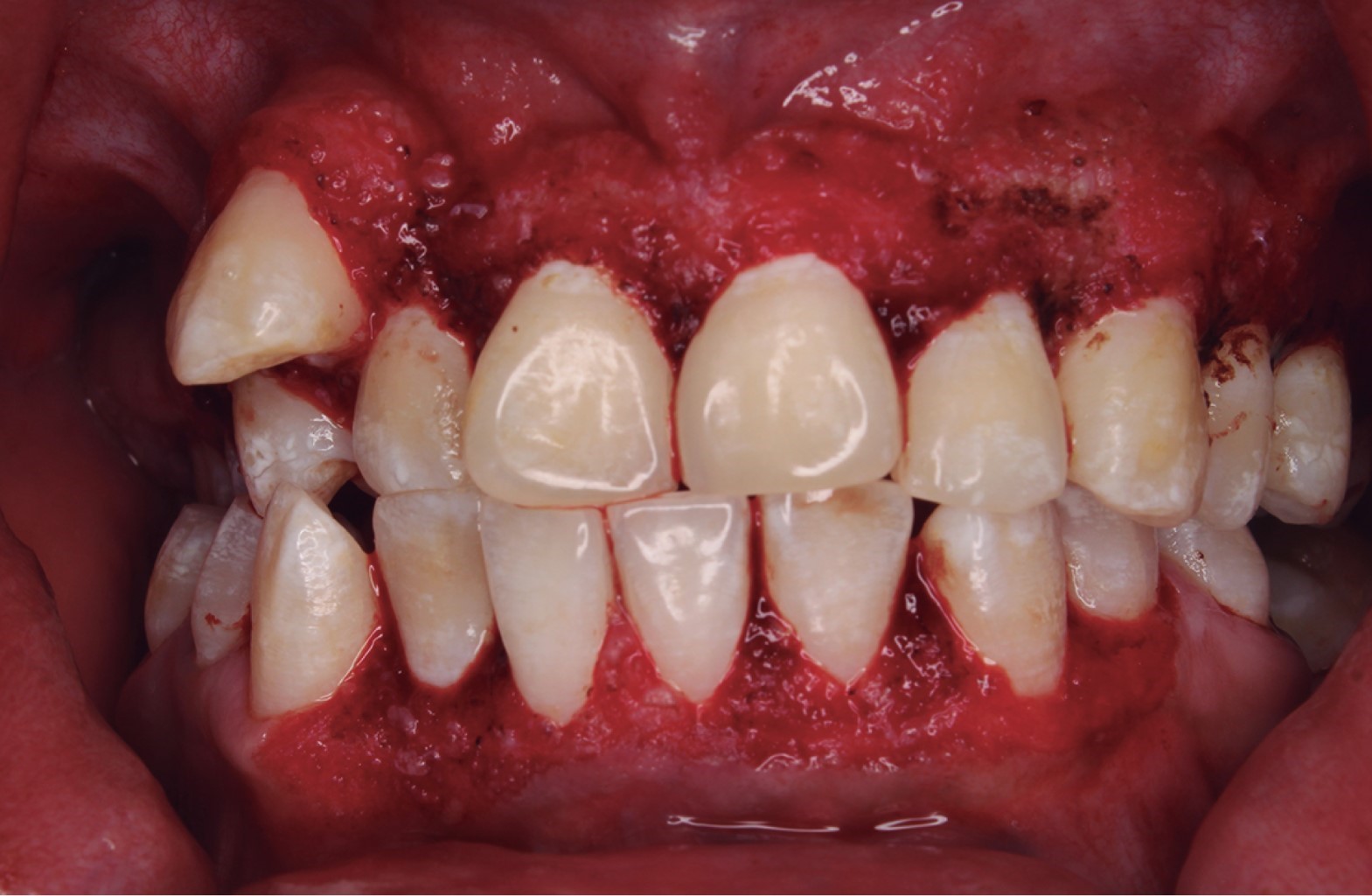 Paciente masculino de 20 años de edad asiste a consulta a la Clínica del Postgrado de Periodoncia en la Facultad de Odontología de la Universidad Autónoma de Coahuila, siendo el motivo de consulta "inconformidad estética y dificultad para masticar debido al crecimiento de encías". Se realizó una anamnesis indirecta por medio de la madre, refiriéndonos que surgió una complicación durante el parto, dejando como secuelas episodios de catalepsia. La tutora del paciente refiere llevar 10 años con fenitoína como tratamiento para dichos episodios, haciendo hincapié que desde entonces empezó a notar el aumento de encía.