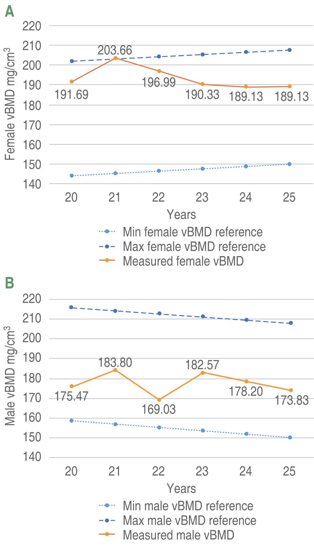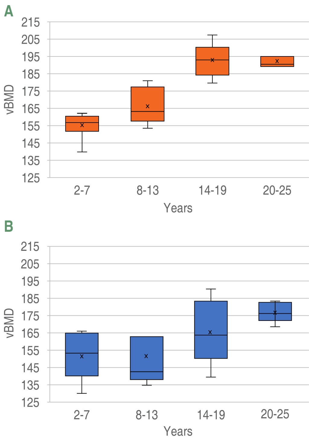 Kalkwarf HJ, Zemel BS, Gilsanz V et al. The bone mineral density in chilhood study: bone mineral content and density according to age, sex and race. J Clin Endocrinol Metab. 2007; 92 (6): 2087-2099.