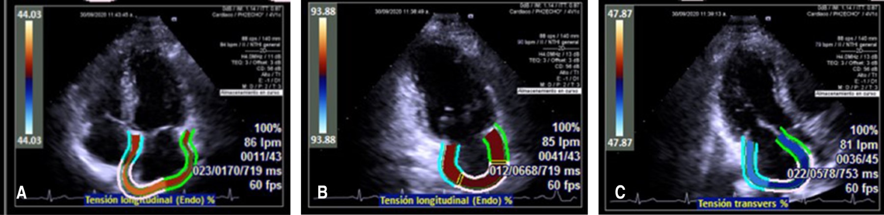 ® Velocity Vector Imaging technology. Se determinó utilizar la vista apical 4, 2 y 3 cámaras para poder calcular la deformación miocárdica. Pacientes mayores de 18 sin factores de riesgo cardiovascular sin enfermedades previas crónicas, infecciosas o congénitas fueron incluidos. Se recabaron en total 126 pacientes sanos, de los cuales 71 (56%) eran del género masculino, la media de edad de la población fue de 38 años (± 16). La variabilidad intraobservador e interobservador fue adecuada. Se compararon los diferentes valores de la aurícula izquierda, en el strain reservorio, sólo se encontró diferencia significativa entre los valores de apical 3 cámaras y el apical 2 cámaras; en el strain bomba no hubo diferencias significativas en los valores; en el strain conducto nuevamente la vista apical 3c fue la menor, encontrando diferencia significativa con el apical 4c, apical 2c y biplanar. Se relacionó la concordancia del strain reservorio de cada vista apical de manera independiente con biplanar y triplanar, documentando que tanto la vista apical 2c y la apical 4c tenían buena concordancia con ambas vistas, sin embargo, la vista apical 3c tenía una menor concordancia. Lo mismo se encontró en el strain bomba y el strain conducto. Siendo superiores las vistas apicales 2c y 4c.