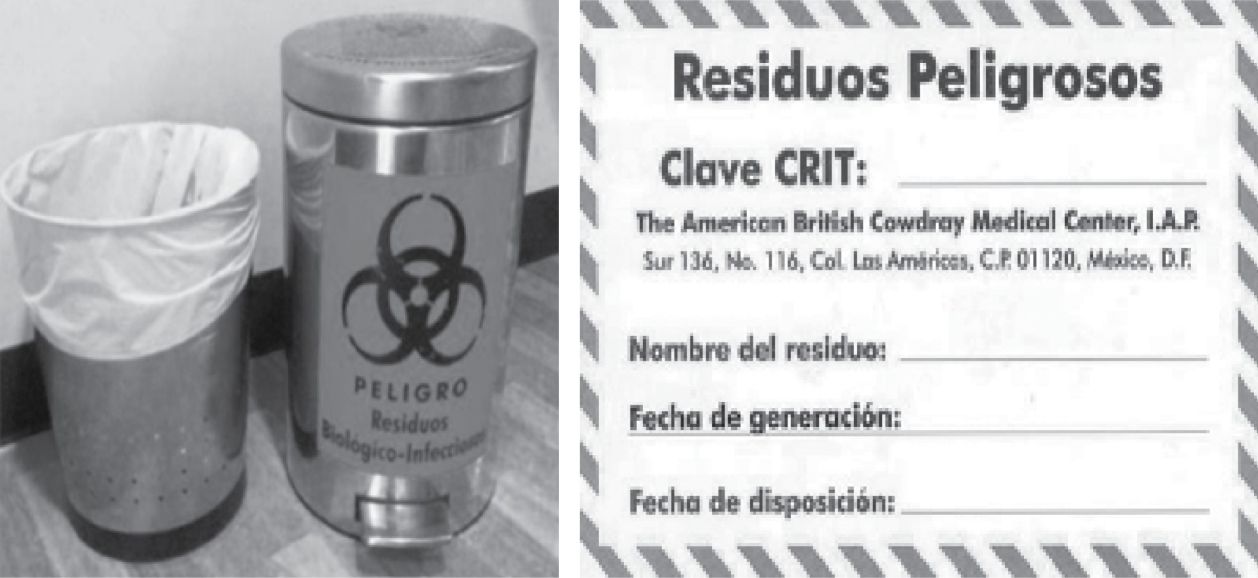 Existen varias normativas para el manejo de residuos: NOM-087-ECOL-SSA1-2002 de "Protección ambiental-salud ambiental-residuos peligrosos biológico-infecciosos-clasificación y especificaciones de manejo", establecida por la Secretaría de Salud y Secretaría de Medio Ambiente y Recursos Naturales (SEMARNAT).5 Dicha normativa establece los requisitos de almacenamiento, envasado, separación, recolección, transporte, tratamiento y disposición final de los residuos peligrosos de las instituciones sanitarias.