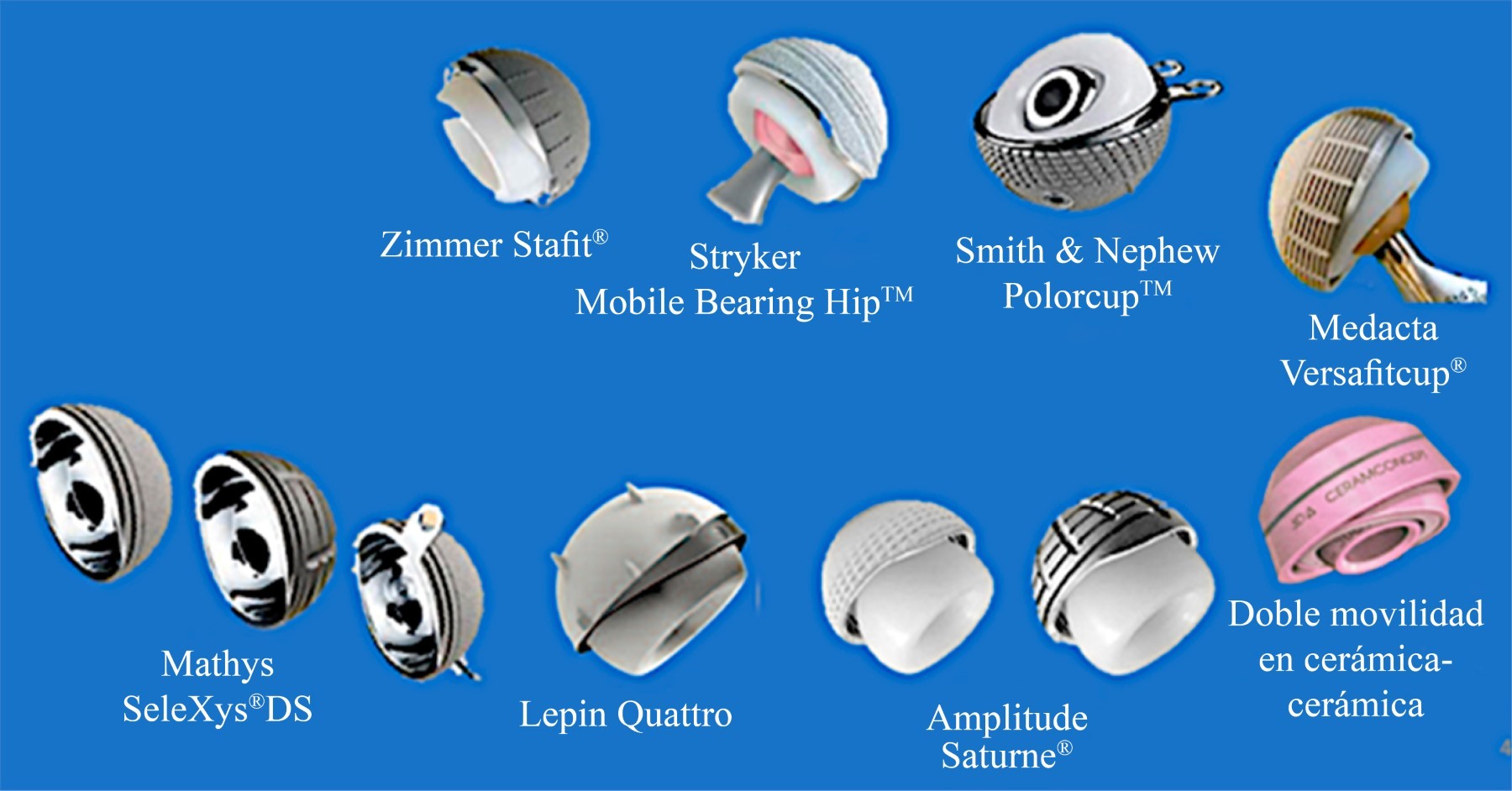 En cuanto a la doble movilidad en fechas recientes ha "renacido" el empleo de la doble movilidad como un recurso antiluxación. Este concepto se desarrolló hace 46 años y en la actualidad se fabrican por diversas empresas. Debe ponerse especial atención a los acetábulos con alta modularidad toda vez que mezclan diversos materiales metálicos, por lo que es mayor el riesgo de corrosión. Actualmente algunos cirujanos los emplean como primera opción en pacientes muy jóvenes y no sólo para los pacientes con elevado riesgo de luxación. Tendremos que observar sus resultados a largo plazo. La historia nos ha enseñado que éstos y otros modelos "renacidos" deben emplearse con mucha cautela.