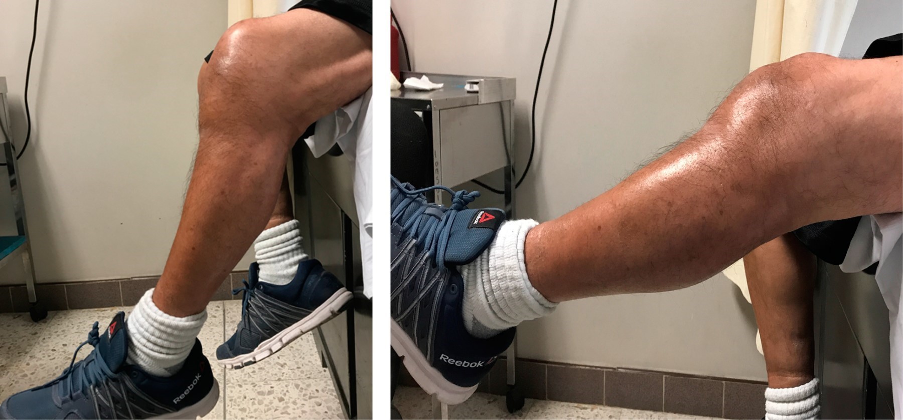 Hombre de 71 años, jubilado, con antecedente de hace 18 años de caída sobre rodilla izquierda en flexión de 90o contra el piso con incapacidad para la marcha de manera inmediata. Recibió atención hasta después de un año de la lesión de manera empírica, acompañado de marcha asistida con bastón y con incapacidad para la extensión activa de la rodilla. Acude a consulta por crepitación audible de la rodilla acompañada de dolor e incapacidad.