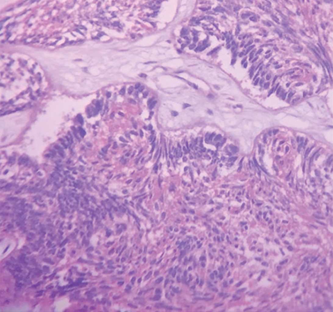 Su apariencia histológica es benigna, sin descartar la posibilidad de que pueda desarrollar un carcinoma ameloblástico, en el que se presenta atipia celular y zonas que aún conservan características de un ameloblastoma benigno.