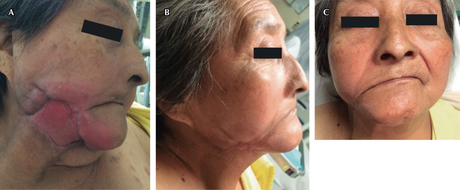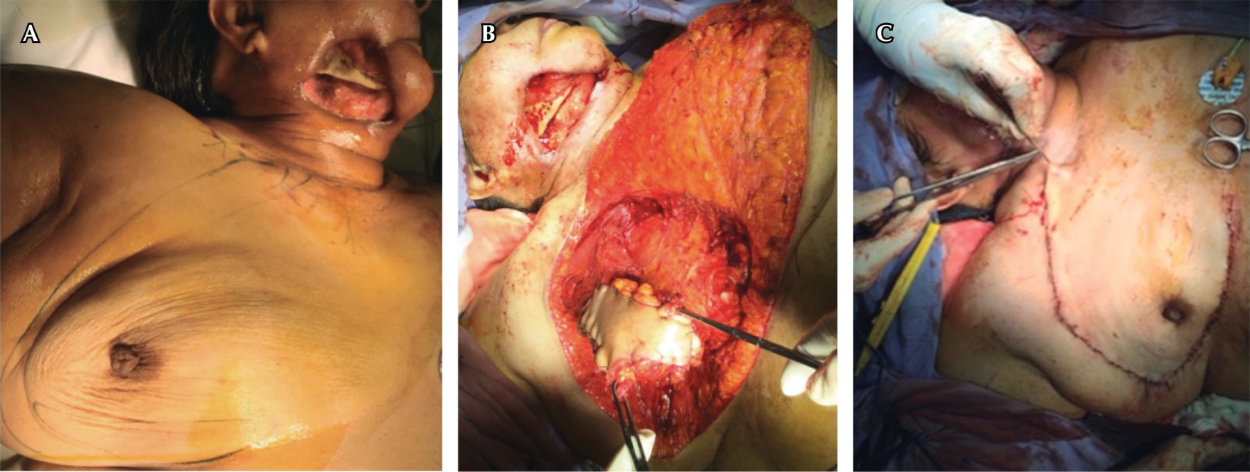 El manejo de pacientes con lesiones extensas a nivel cervical requiere no sólo destreza técnica, sino amplios conocimientos en ciencias básicas y en métodos fundamentales de otras disciplinas quirúrgicas, ejemplo de estos procedimientos es la rotación de colgajos de sitios distantes a la región facial. Dentro de la formación del cirujano maxilofacial se debe contar esta preparación para así poder ofrecer estos tratamientos realizándolos en forma individual o colectiva, en nuestro caso, todos los procedimientos fueron realizados sólo por nuestro servicio.
