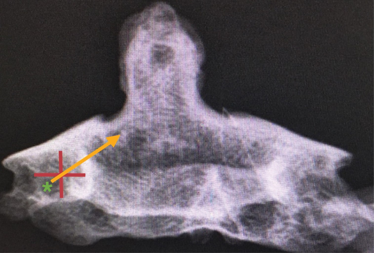 Un punto que consideramos importante es que el tornillo no debe pasar la porción medial de la carilla articular superior por riesgo de perforar la cortical anterior del cuerpo vertebral y lesionar estructuras anteriores (Figura 3). Recomendamos realizar el estudio tomográfico de control en el mismo día de la cirugía y evaluar la posición de su tornillo (Figura 4).