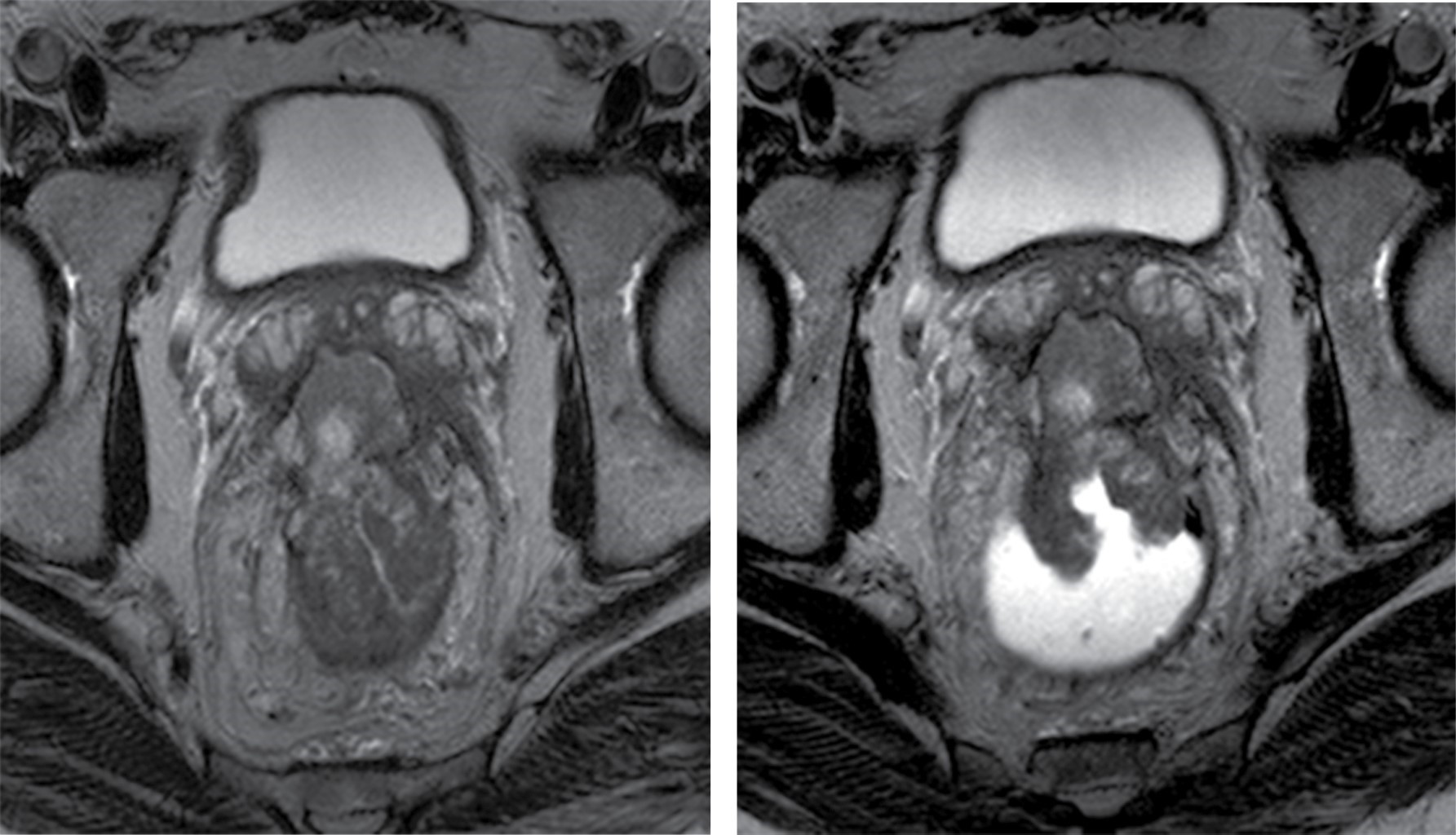 Paciente masculino de 64 años de edad, sin antecedentes personales de importancia, que hace aproximadamente seis meses presenta cambios en los hábitos intestinales con periodos de estreñimiento y diarrea que se acompañan de heces acintadas y rectorragia, por lo que acude a médico tratante quien envía resonancia magnética para valoración de recto.