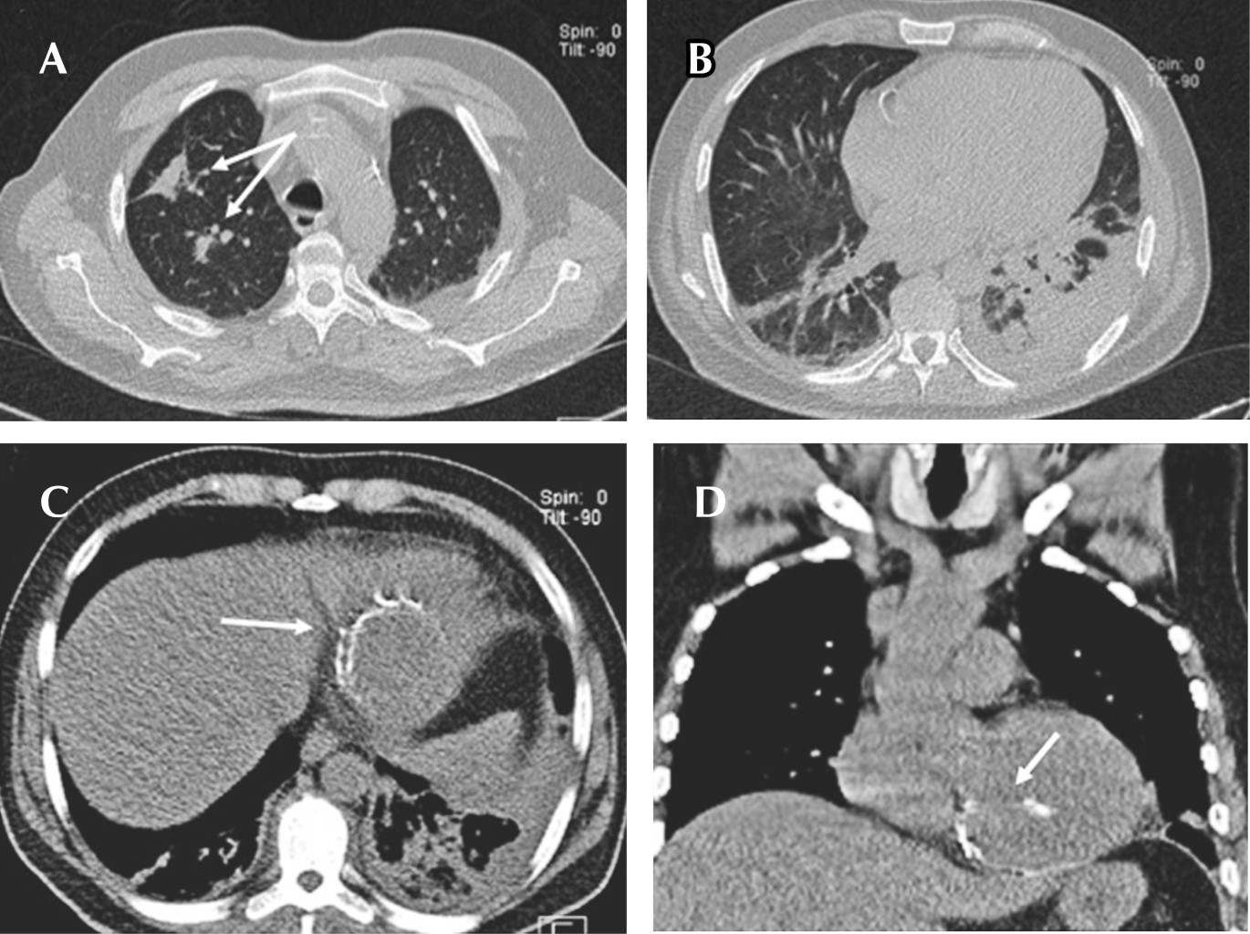 El aneurisma ventricular postinfarto se define como una dilatación del ventrículo izquierdo o derecho en forma sacular que puede provocar su ruptura a nivel de la pared o septum ventricular y puede predisponer a endocarditis debido a la producción de turbulencias ocasionadas por cortocircuitos que ocasionan daño del tejido endocárdico con la consecuente colonización bacteriana y embolismos sistémicos. Una vez confirmado el diagnóstico, debe otorgarse tratamiento antibiótico y, en caso de complicaciones, valorarse el tratamiento quirúrgico. Se reporta el caso de un paciente masculino con antecedente previo de infarto agudo de miocardio, el cual acudió a urgencias por presentar datos de respuesta inflamatoria sistémica, evidenciándose endocarditis en válvula tricúspide y un aneurisma ventricular roto, condicionando fenómenos embólicos a columna dorsal, por lo que requirió tratamiento quirúrgico.