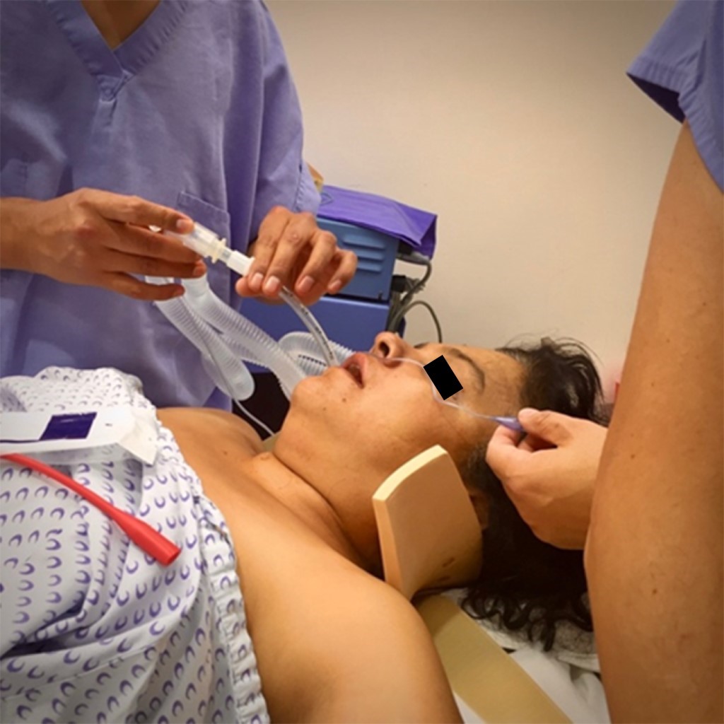 La técnica para asegurar una adecuada ventilación, oxigenación y evitar aspiración del contenido gástrico dependerá de los siguientes factores: la urgencia de la necesidad de intubar, si el paciente es cooperador, presencia de secreciones/sangre en la vía aérea, distorsiones anatómicas de la vía aérea secundarias a trauma, recursos del centro hospitalario y la habilidad del médico. Las opciones de primera línea para manejo avanzado de la vía aérea en estos pacientes son laringoscopía directa, fibrobroncoscopio, fibroscopio Bonfil o v ideolaringoscopio.